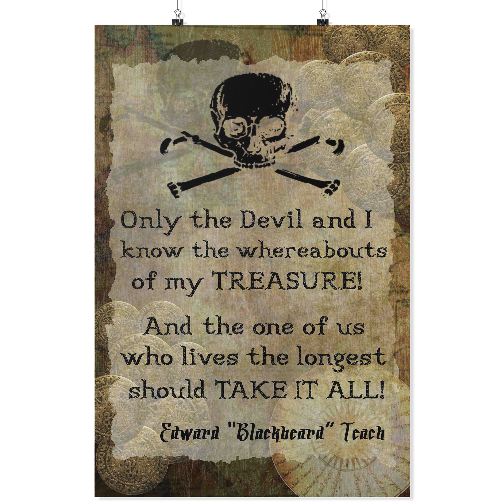 "Only the Devil and I know the whereabouts of my Treasure, and the One of Us who Lives the Longest should Take It All" A famous quote from Edward Teach, also known as the ruthless pirate Blackbeard.