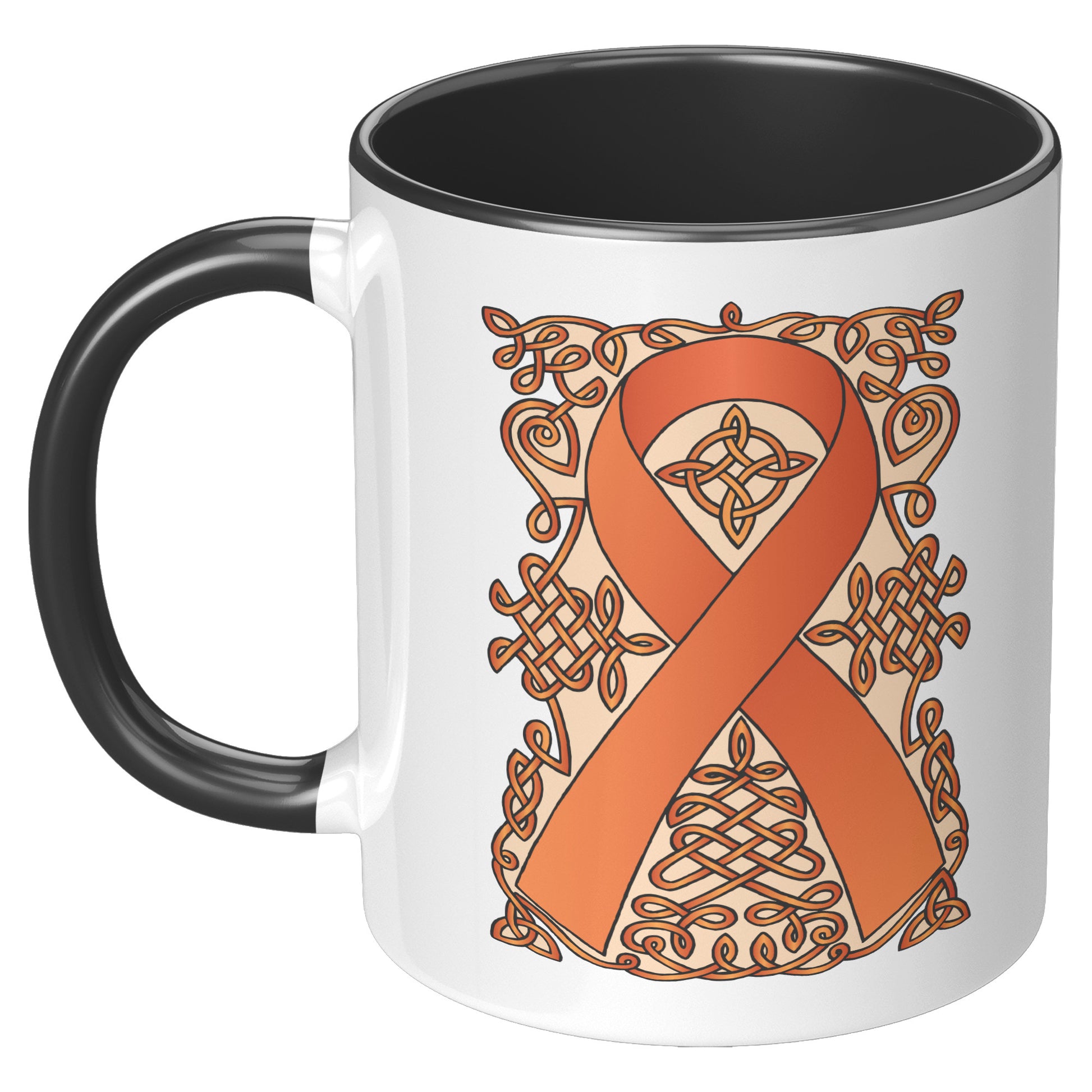 This coffee mug features the Orange Celtic Art Awareness Ribbon digital collage by Ravensdaughter.