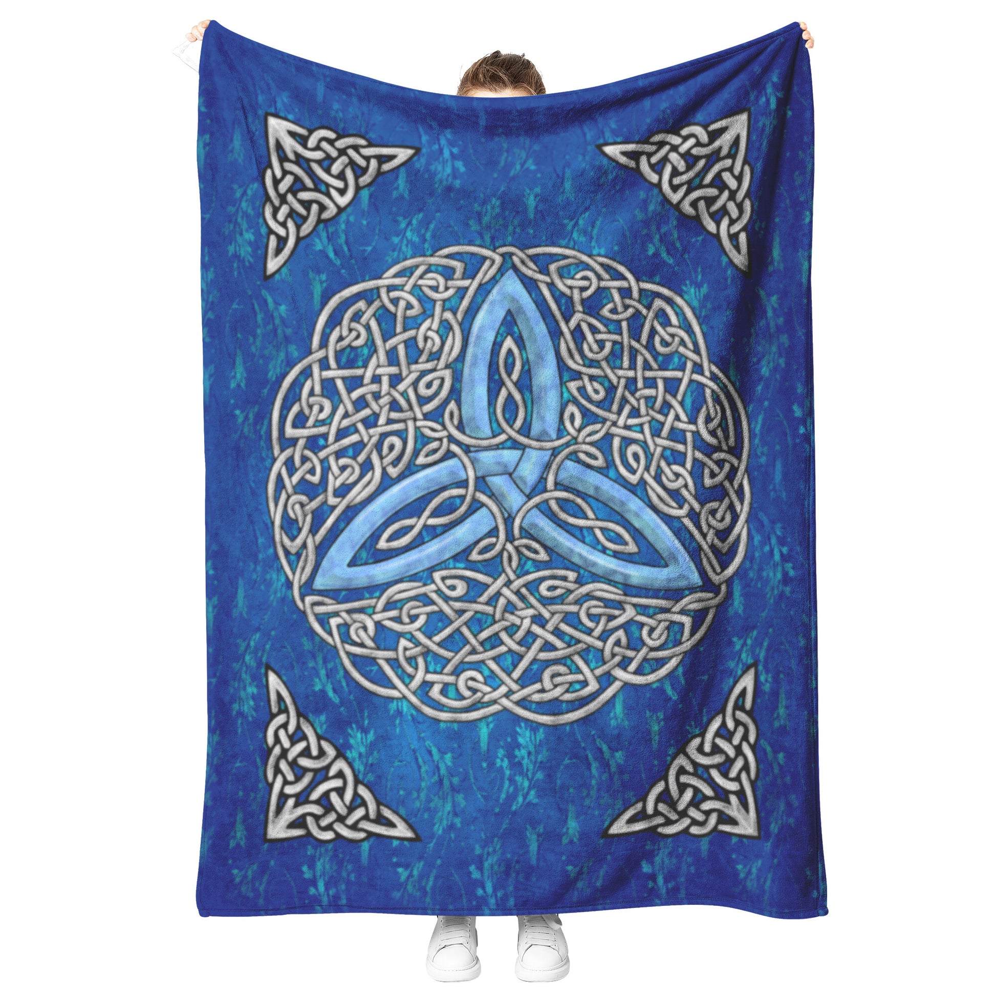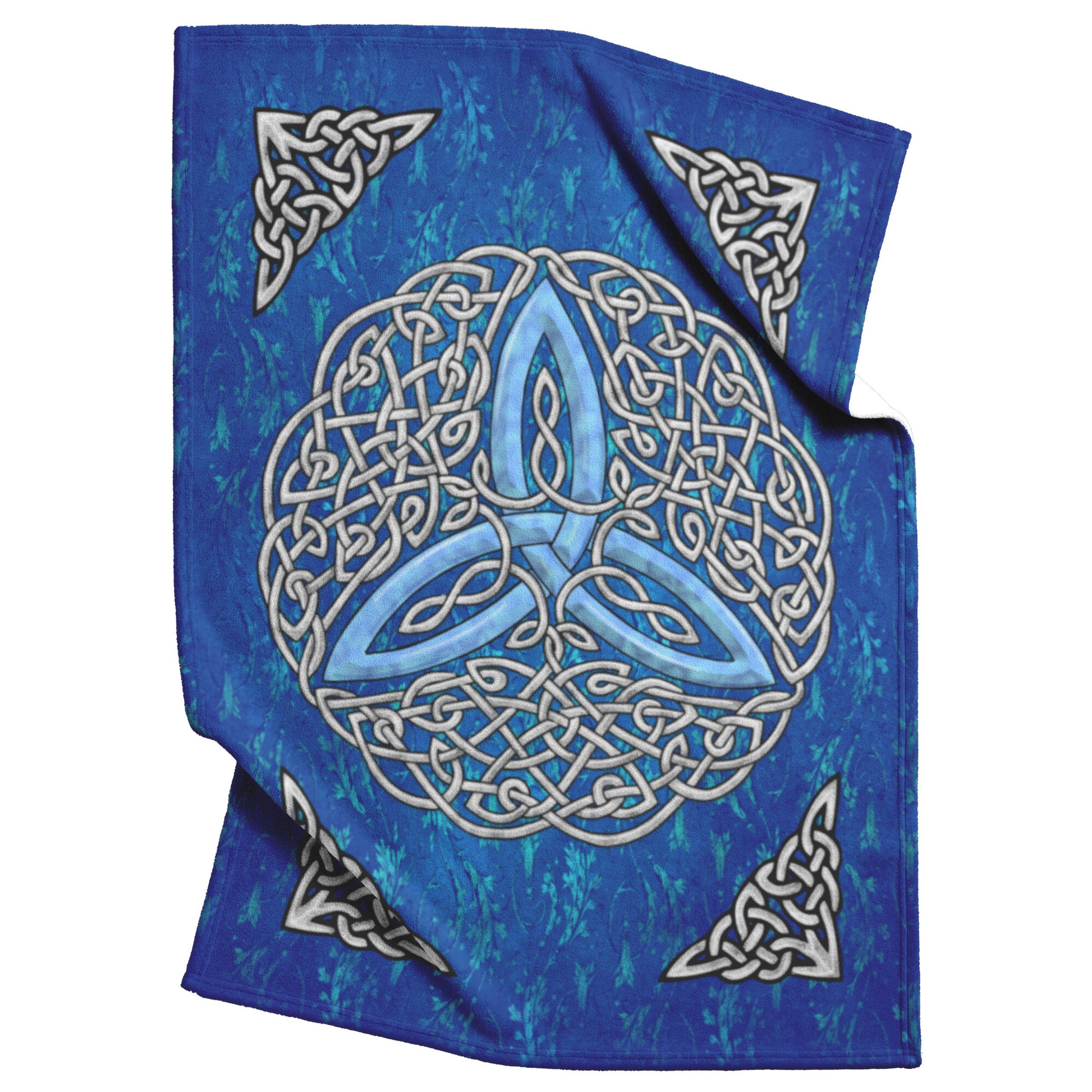 Celtic Flourish Trinity Knot Fleece Blanket - Blue
