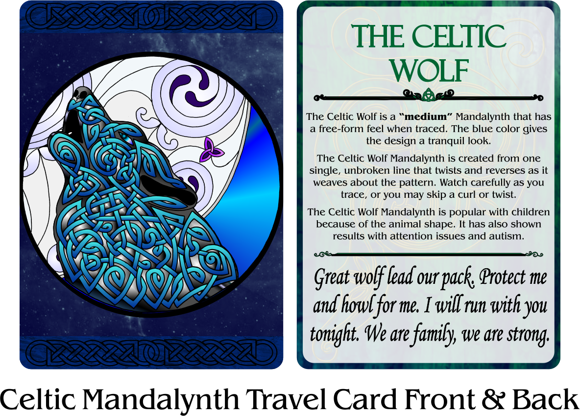 MINDFULNESS ON THE GO.Celtic Mandalynth Travel Cards are perfect to take in a purse, bag or backpack. The cards are FLAT. Each measures 5” x 7” and comes with descriptive text and inspirational verse. Each pack comes in a clear cellophane bag, and has an instruction card and a glitter stick for tracing.