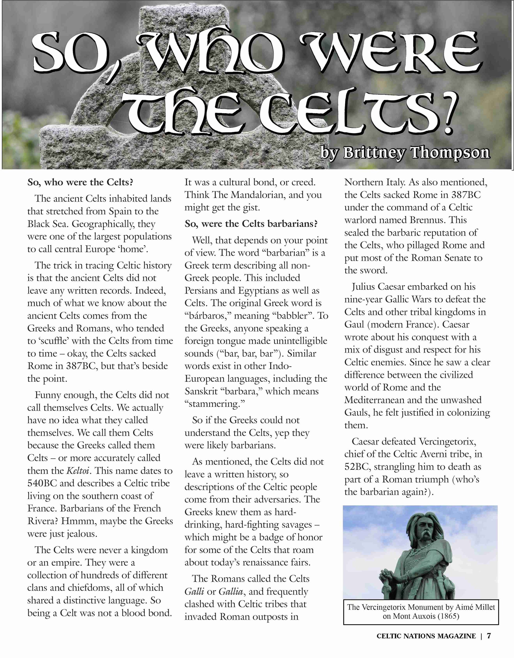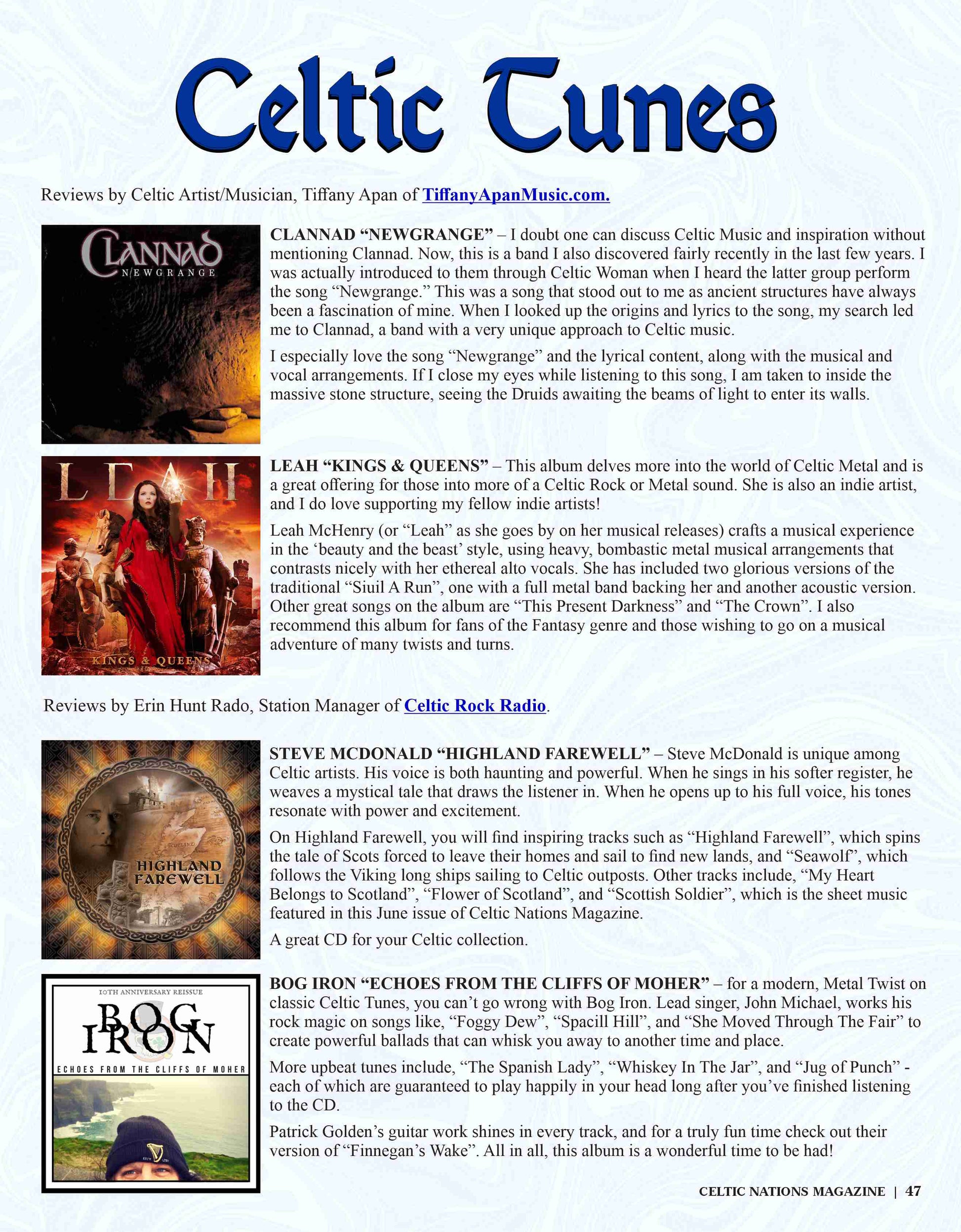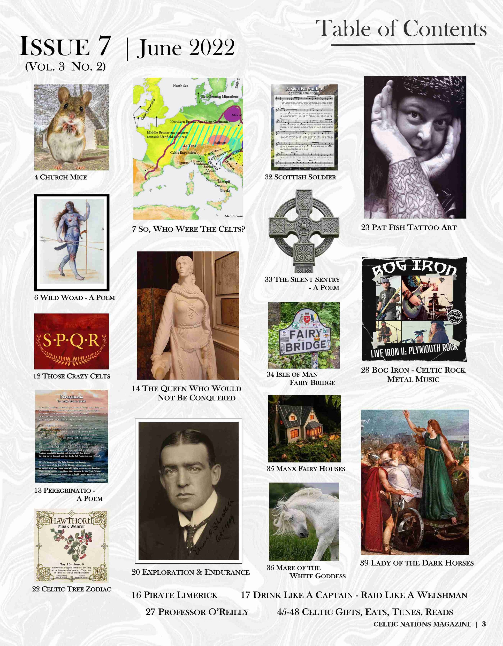 Celtic Nations Magazine is a NEW quarterly publication that explores the world's Celtic Nations. Each issue features an eclectic mix of Celtic history, modernity, art, music, mysticism, poetry, fiction, reviews and more.