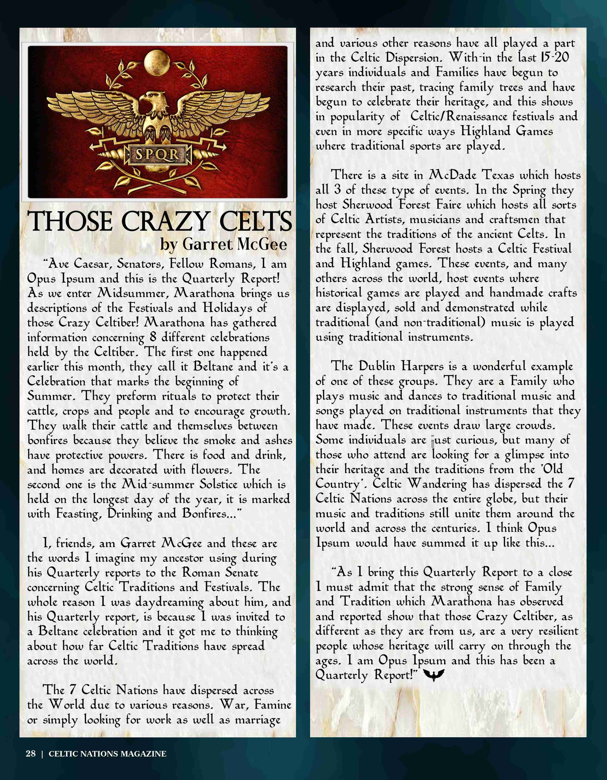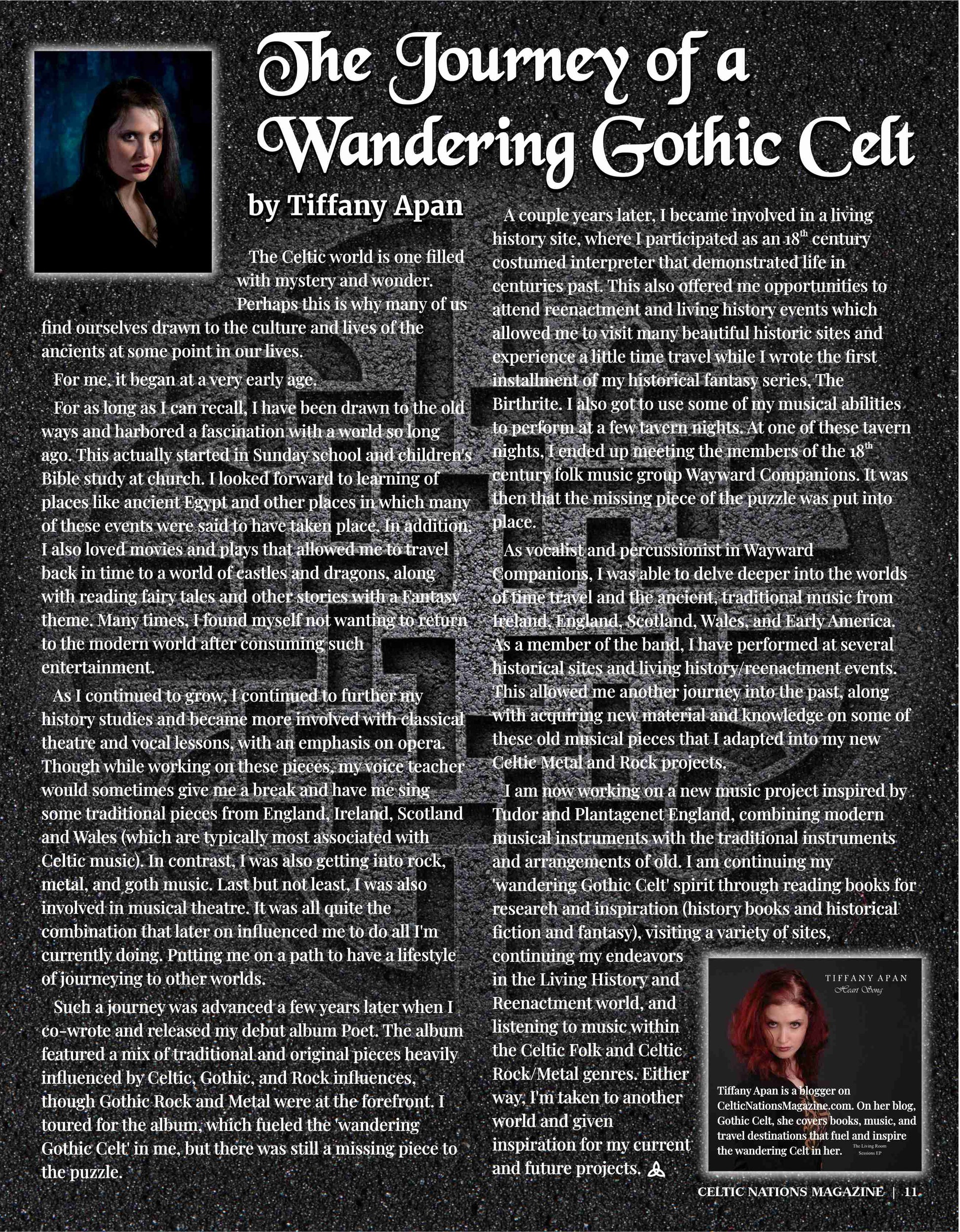 You can SUBSCRIBE at www.celticnationsmagazine.com to read the magazine online, and you can purchase your hard copy of "Celtic Wandering" here.