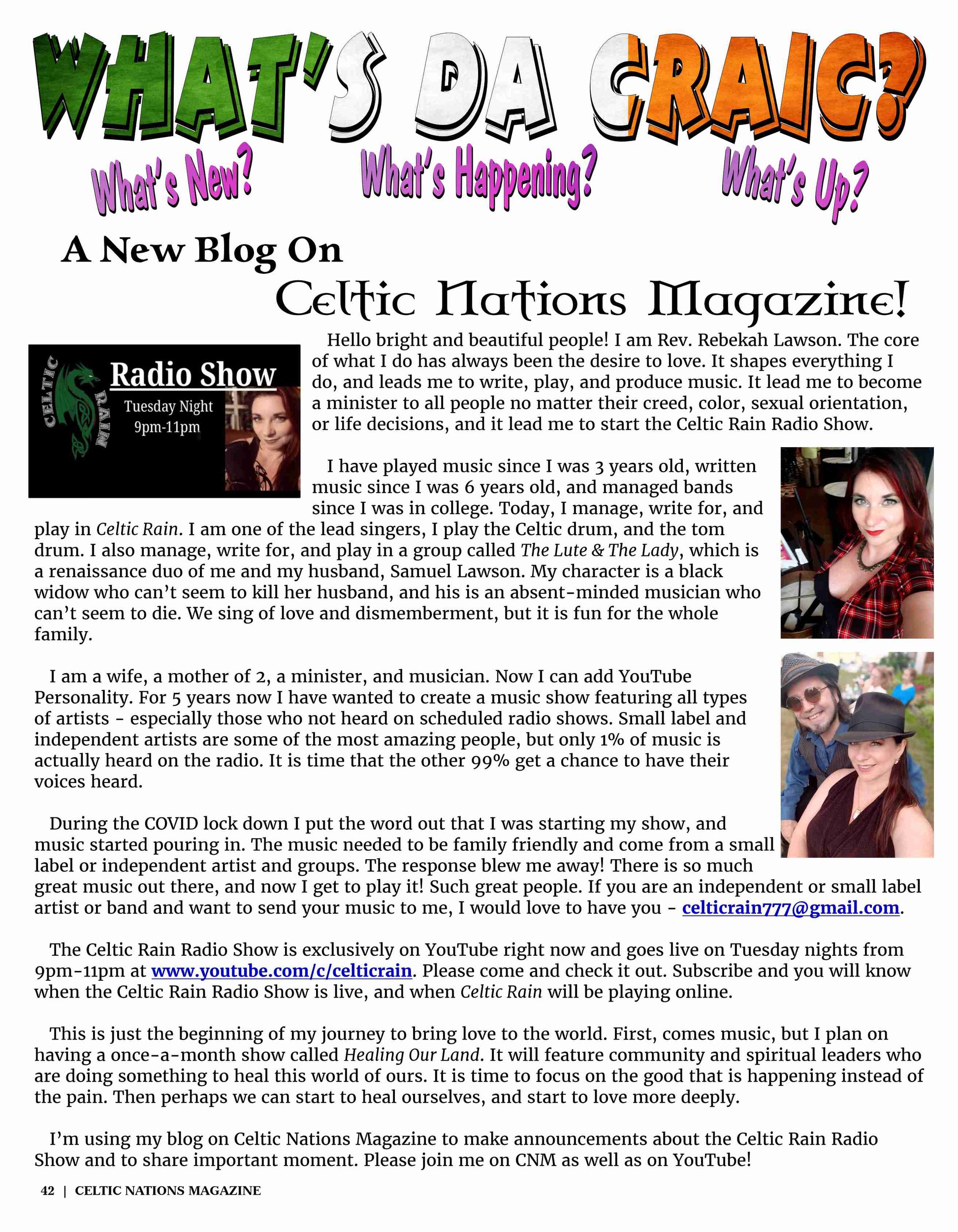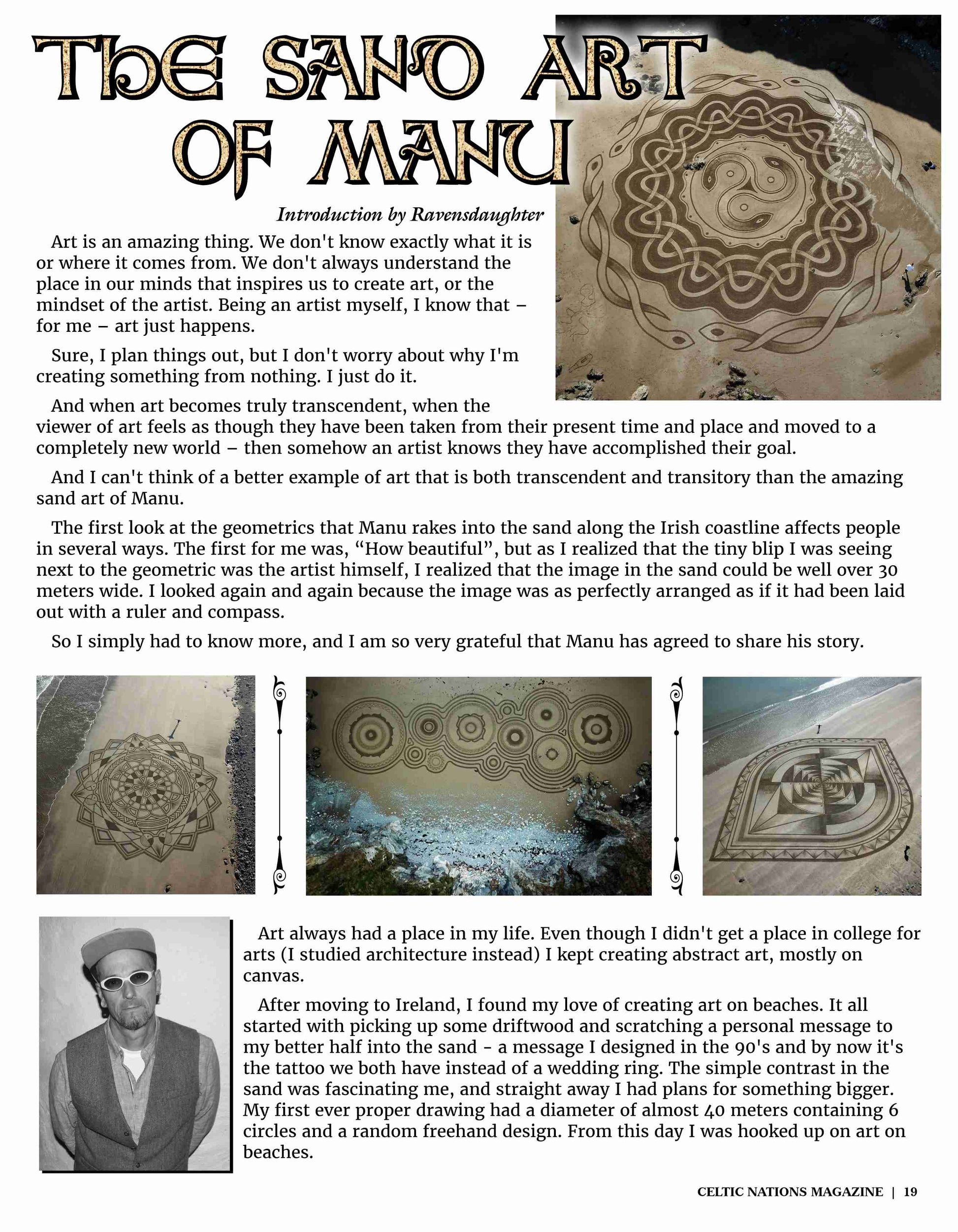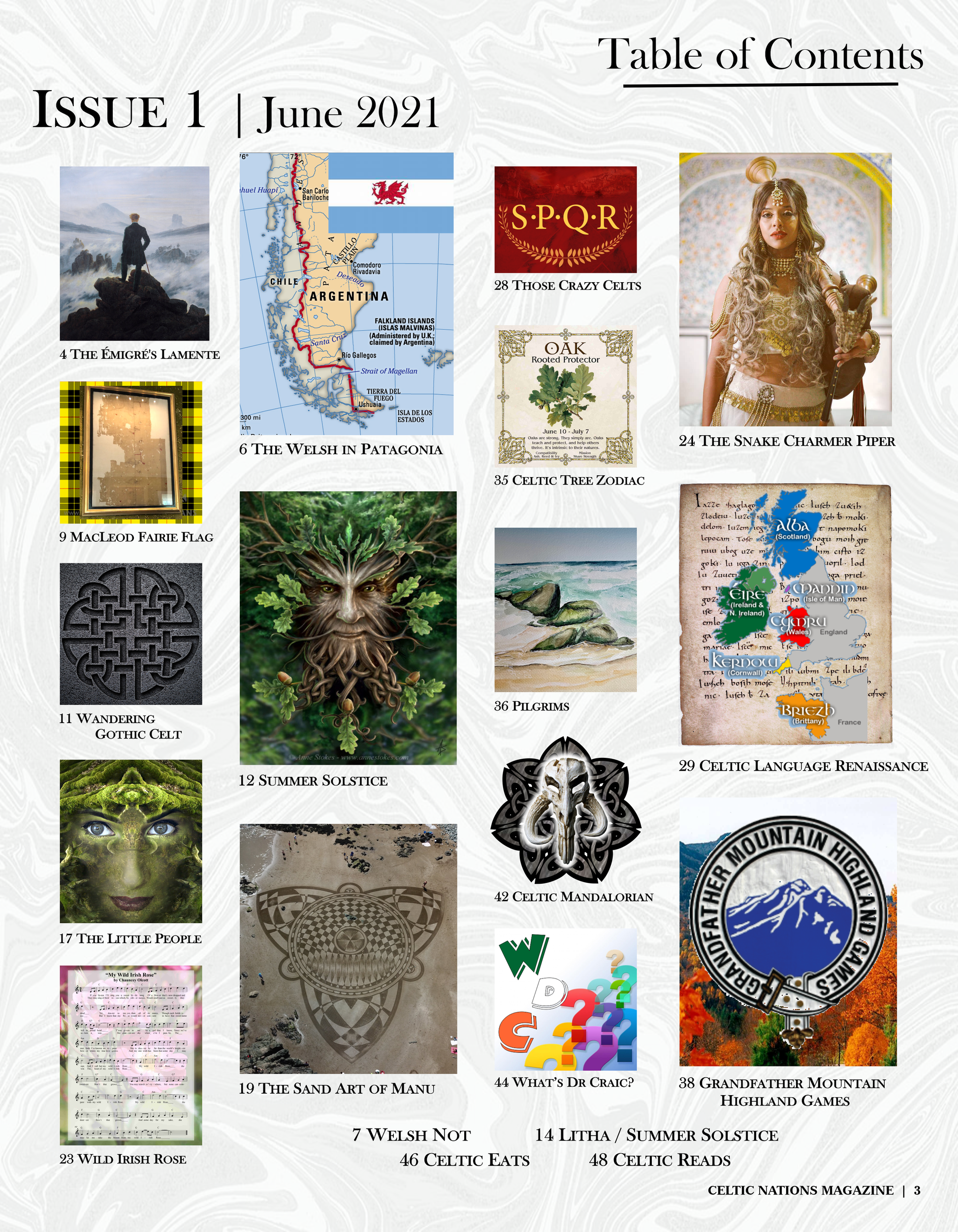 Celtic Nations Magazine is a NEW quarterly publication that explores the world's Celtic Nations. Each issue features an eclectic mix of Celtic history, modernity, art, music, mysticism, poetry, fiction, reviews and more.
