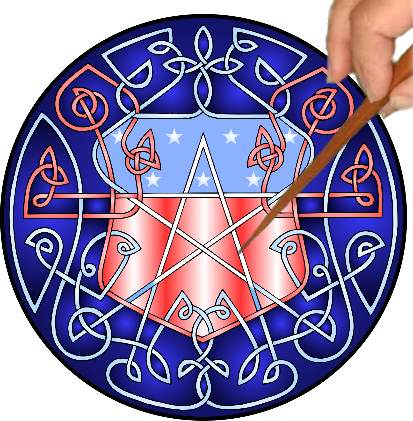 The Celtic Star Shield is an OPEN Mandalynth design that has a gentle glide when traced. The design is created with two intersecting lines, one light blue and the other light red, that change to white as they weave into the central star. The Celtic Star Shield has a rhythmic count of, “And One, And Two, And Three, And Four”. Count aloud or silently when tracing to create a light self-hypnosis. The Celtic Start Shield Mandalynth is good for stress relief, anxiety relief, panic attack management, and trauma management.
