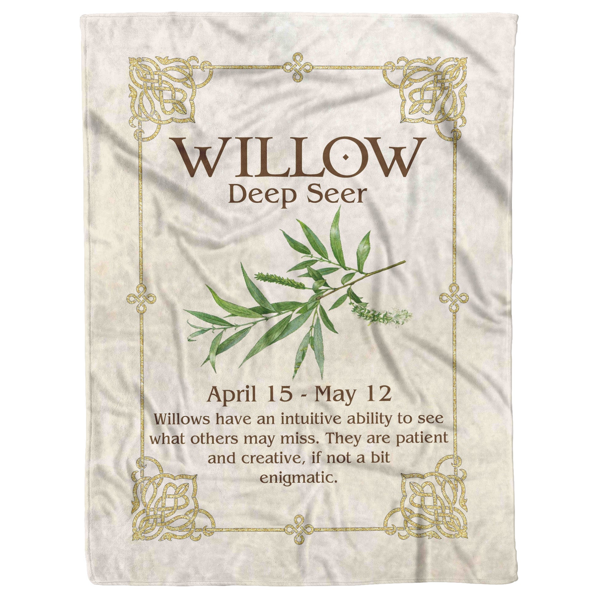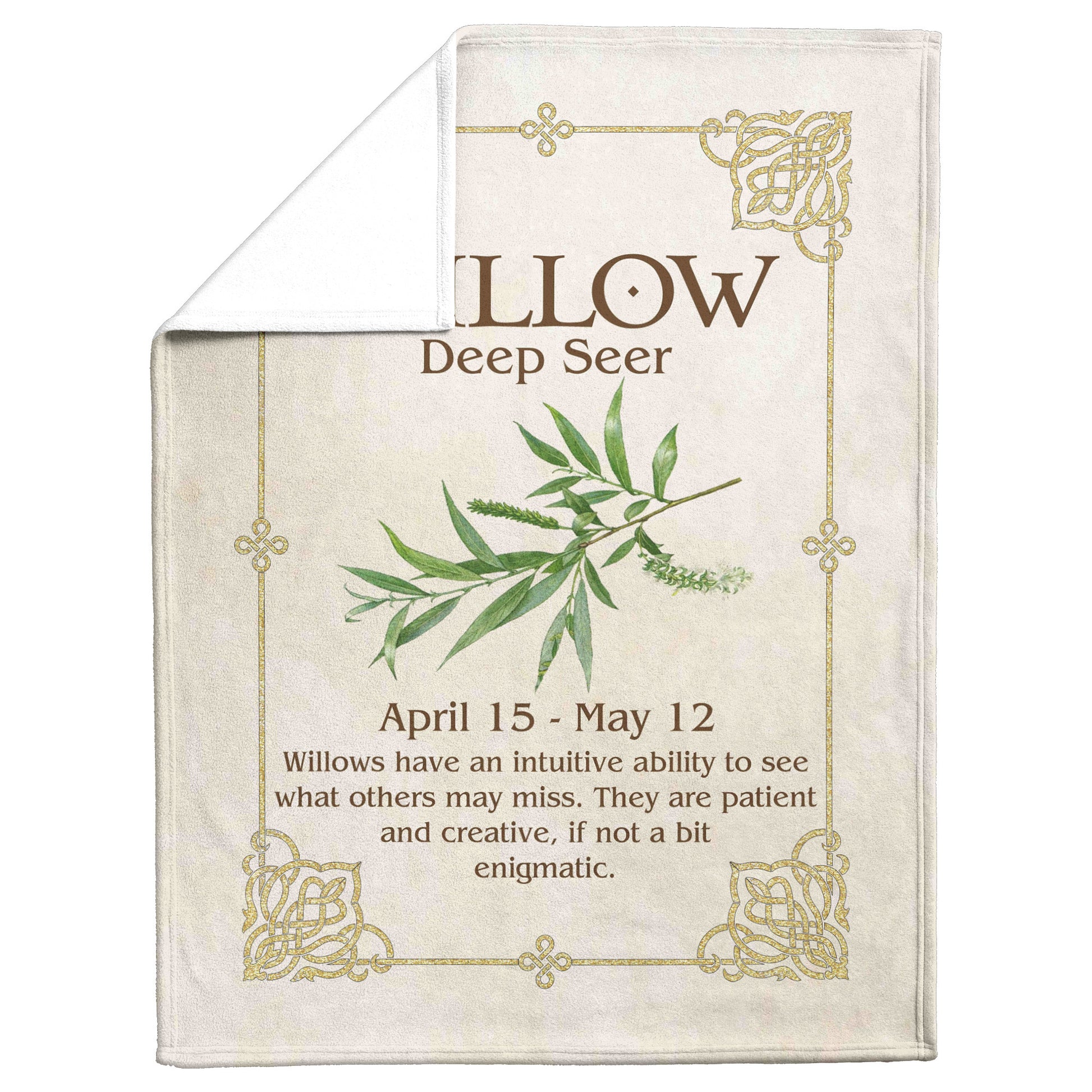 This lovely fleece blanket features the Celtic Tree Zodiac WILLOW, The Deep Seer. Willows have an intuitive ability to see what others may miss. They are patient and creative, if not a bit enigmatic.