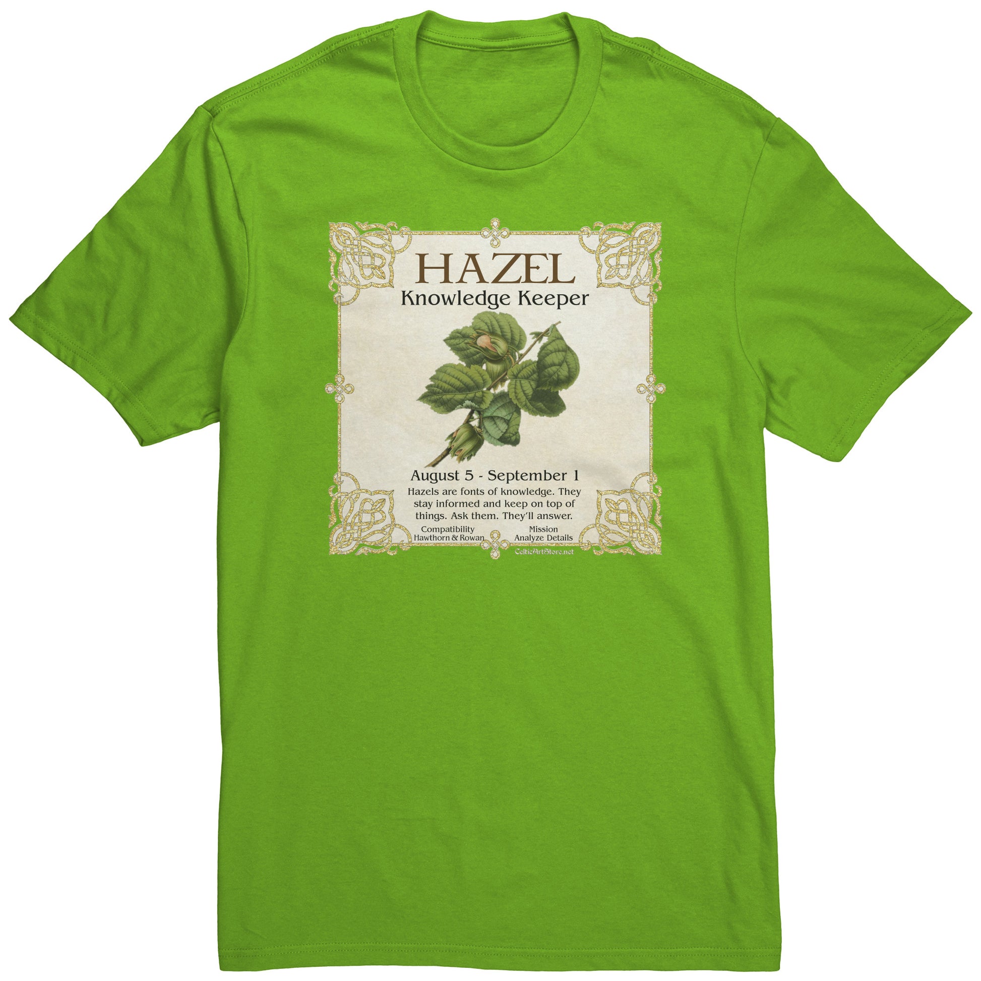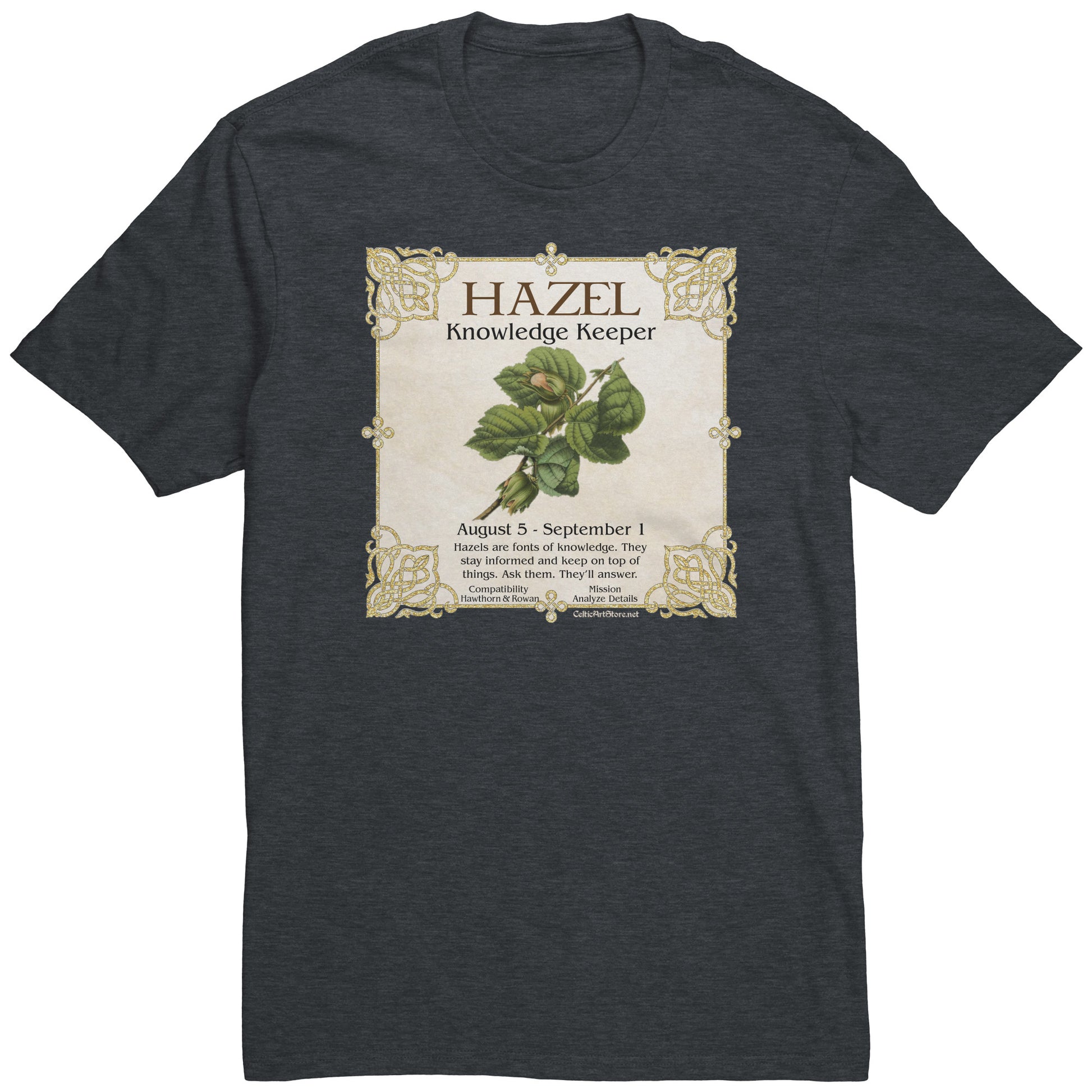 These soft, mid-weight cotton tees feature the Celtic Tree Zodiac HAZEL, The Knowledge Keeper. Hazels are fonts of knowledge. They stay informed and keep on top of things. Ask them. They’ll answer.
