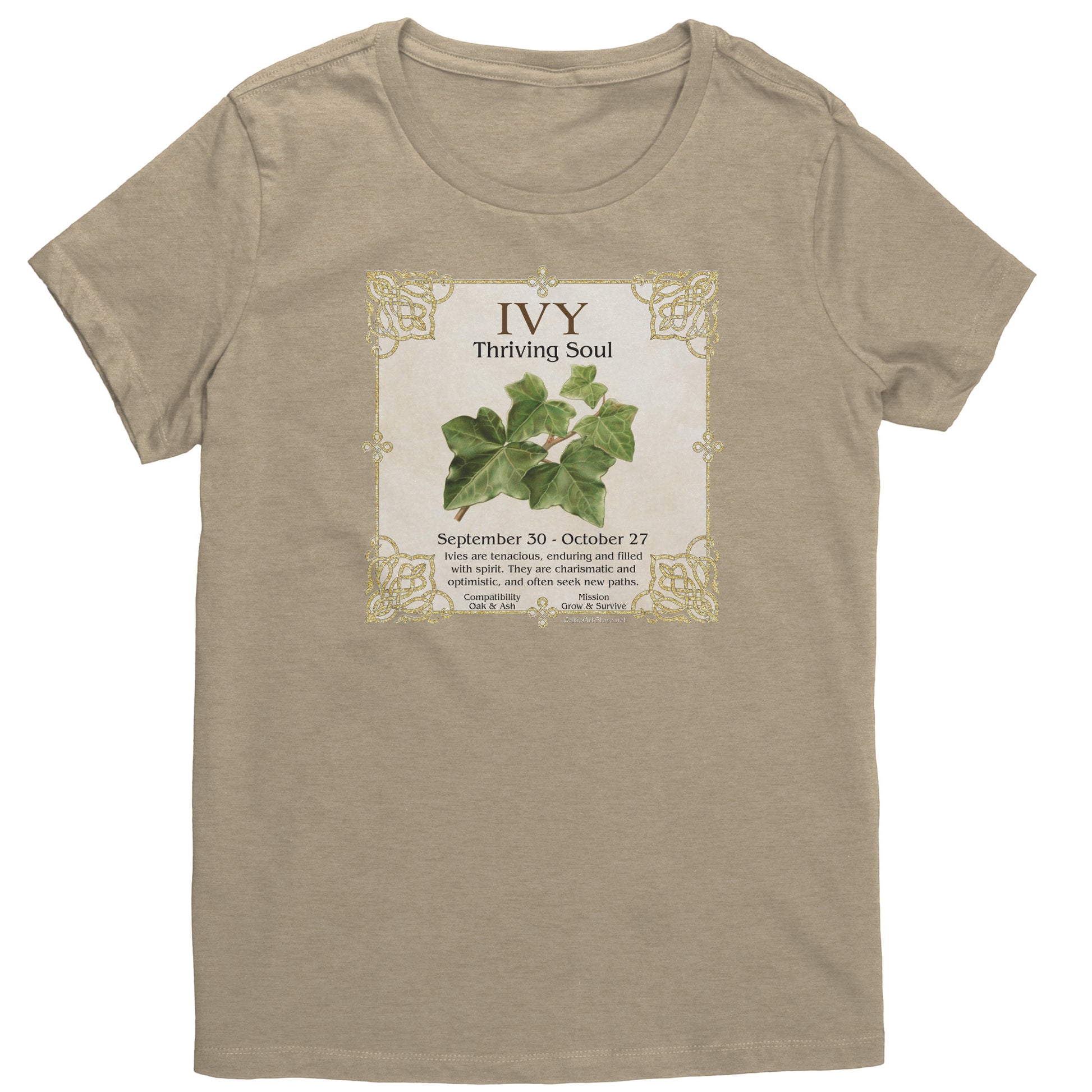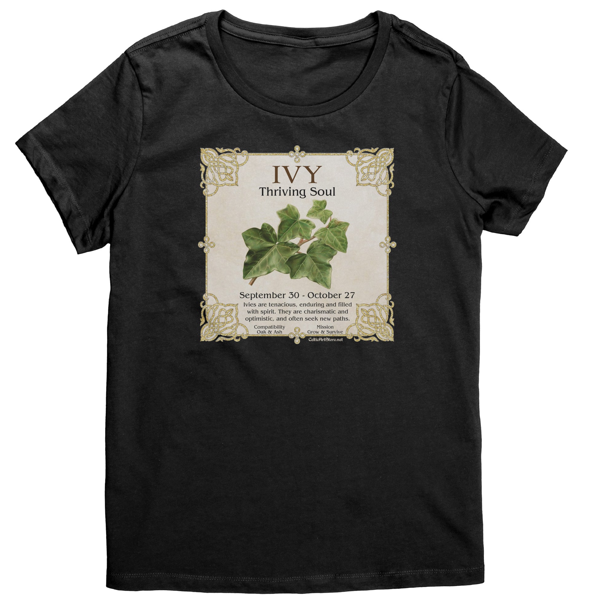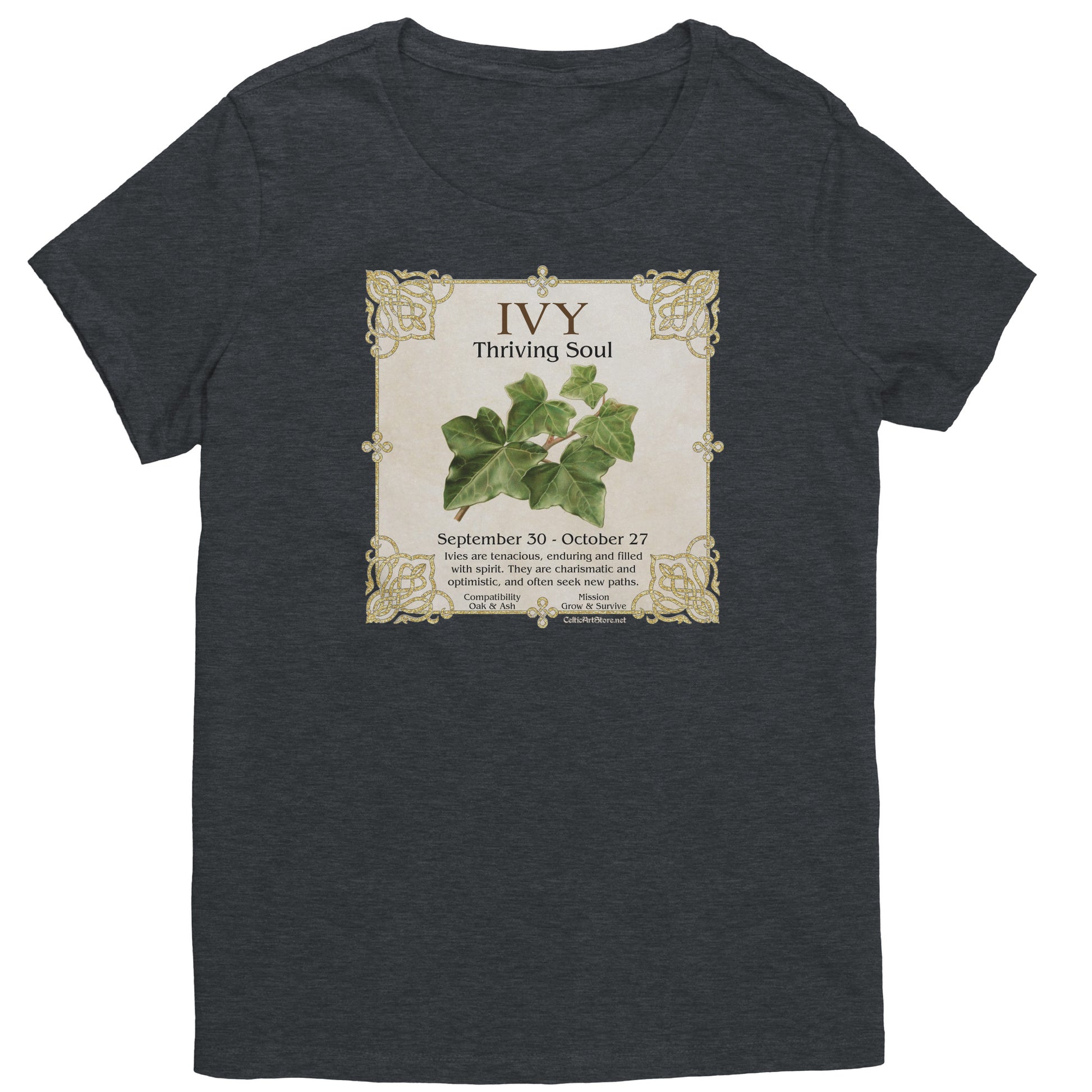 These soft, mid-weight cotton tees feature the Celtic Tree Zodiac IVY, The Thriving Soul. Ivies are tenacious, enduring and filled with spirit. They are charismatic and optimistic, and often seek new paths.
