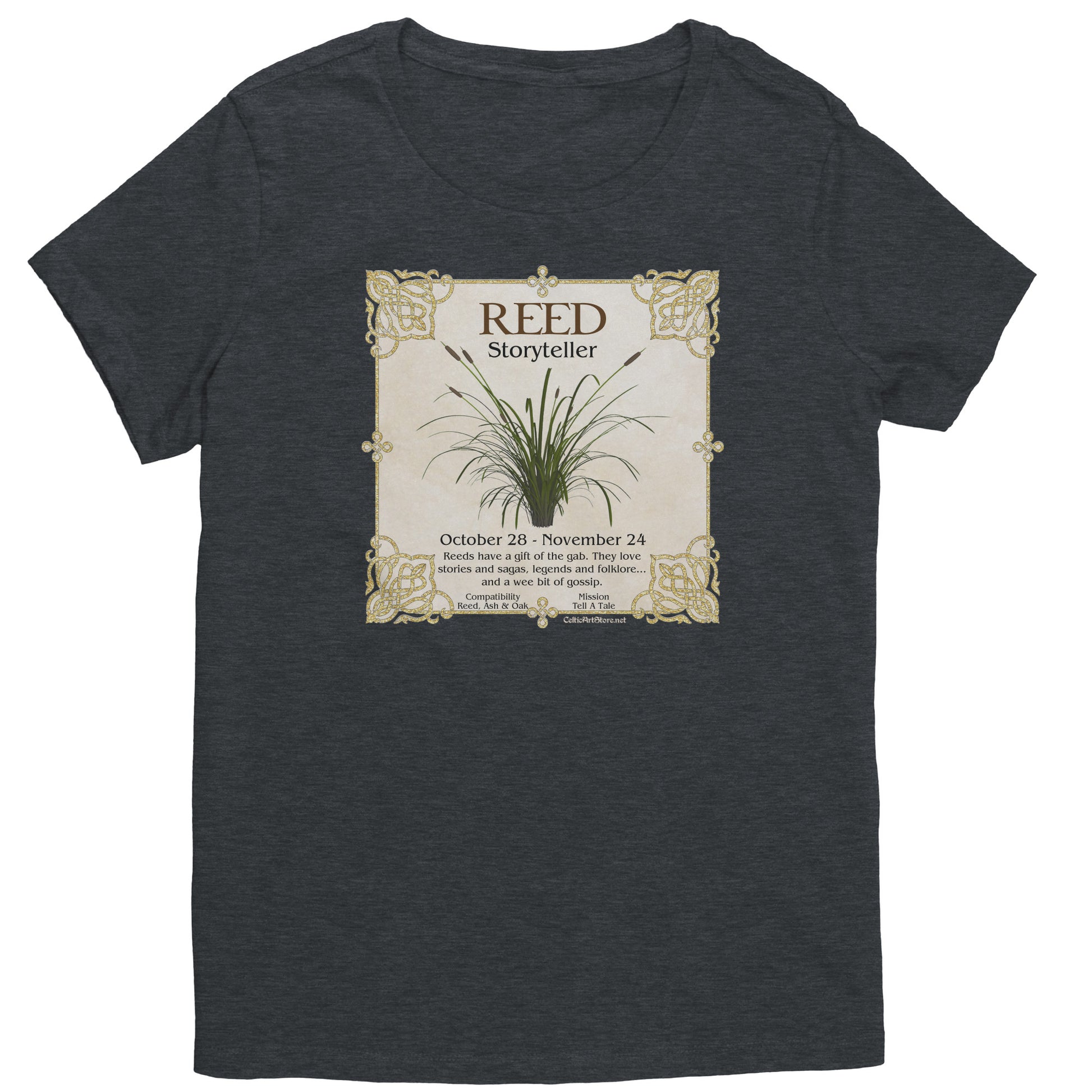These soft, mid-weight cotton tees feature the Celtic Tree Zodiac REED, The Storyteller. Reeds have a gift of the gab. They love stories and sagas, legends and folklore... and a wee bit of gossip.