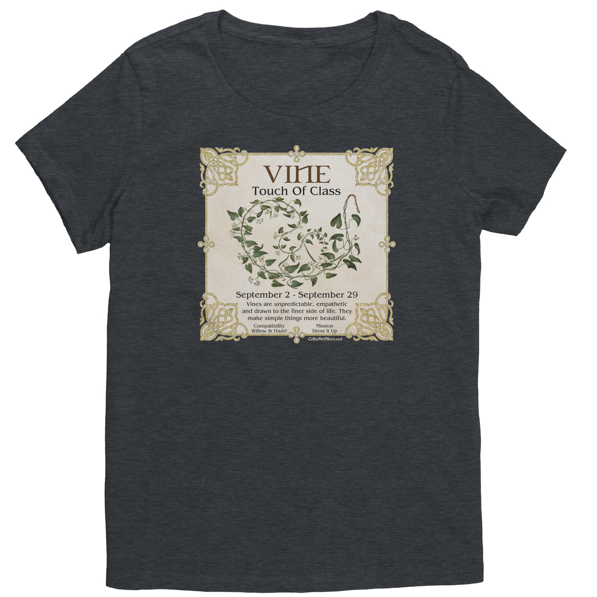 These soft, mid-weight cotton tees feature the Celtic Tree Zodiac VINE, A Touch Of Class. Vines are unpredictable, empathetic and drawn to the finer side of life. They make simple things more beautiful.