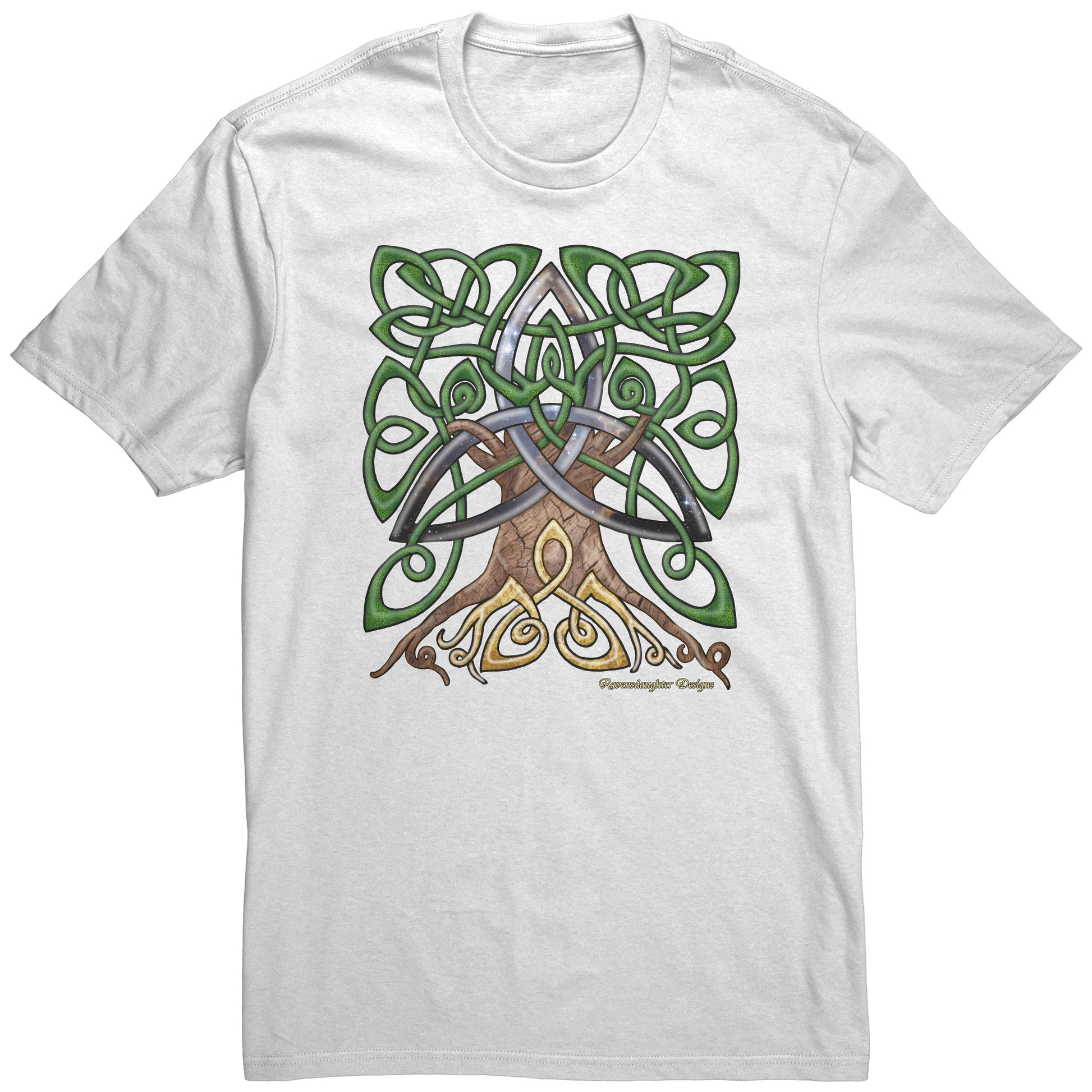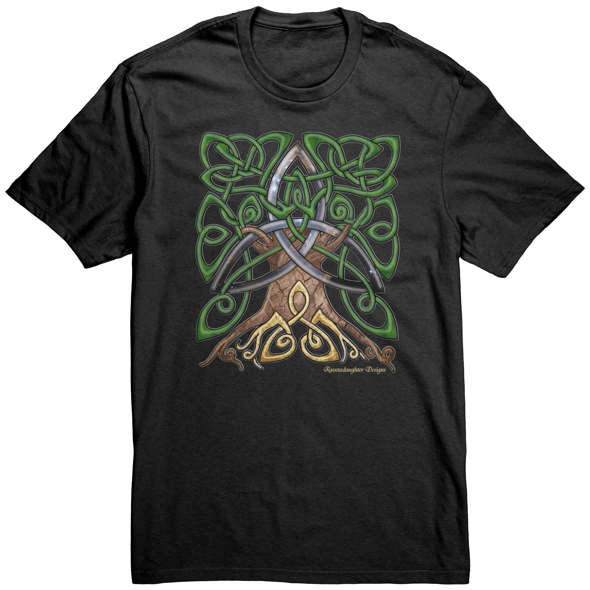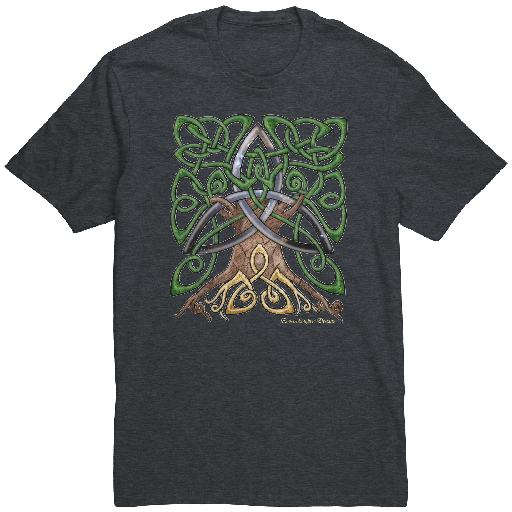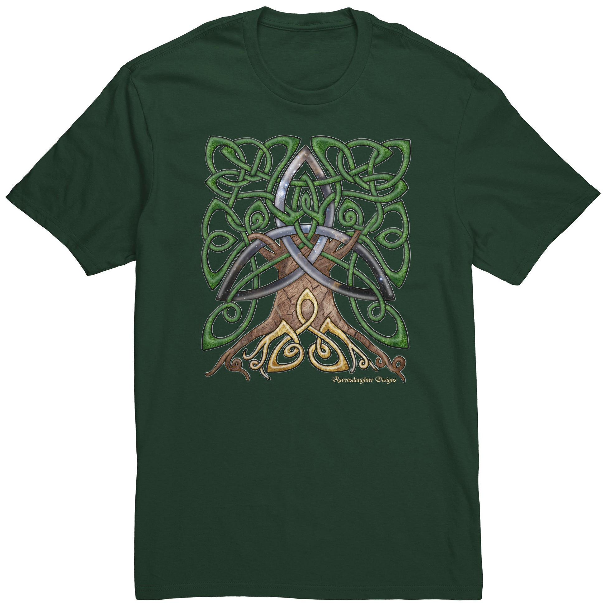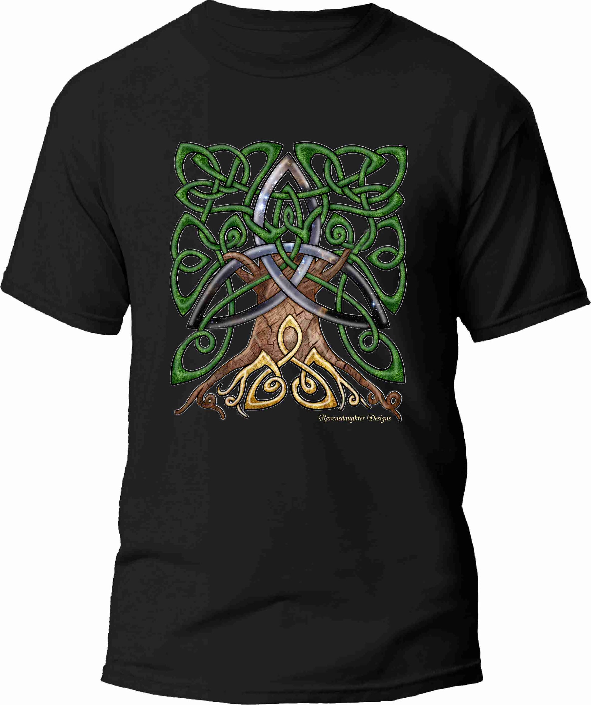 This comfy mid-weight cotton t-shirt features the Cosmic Celtic Trinity Tree design by Ravensdaughter.