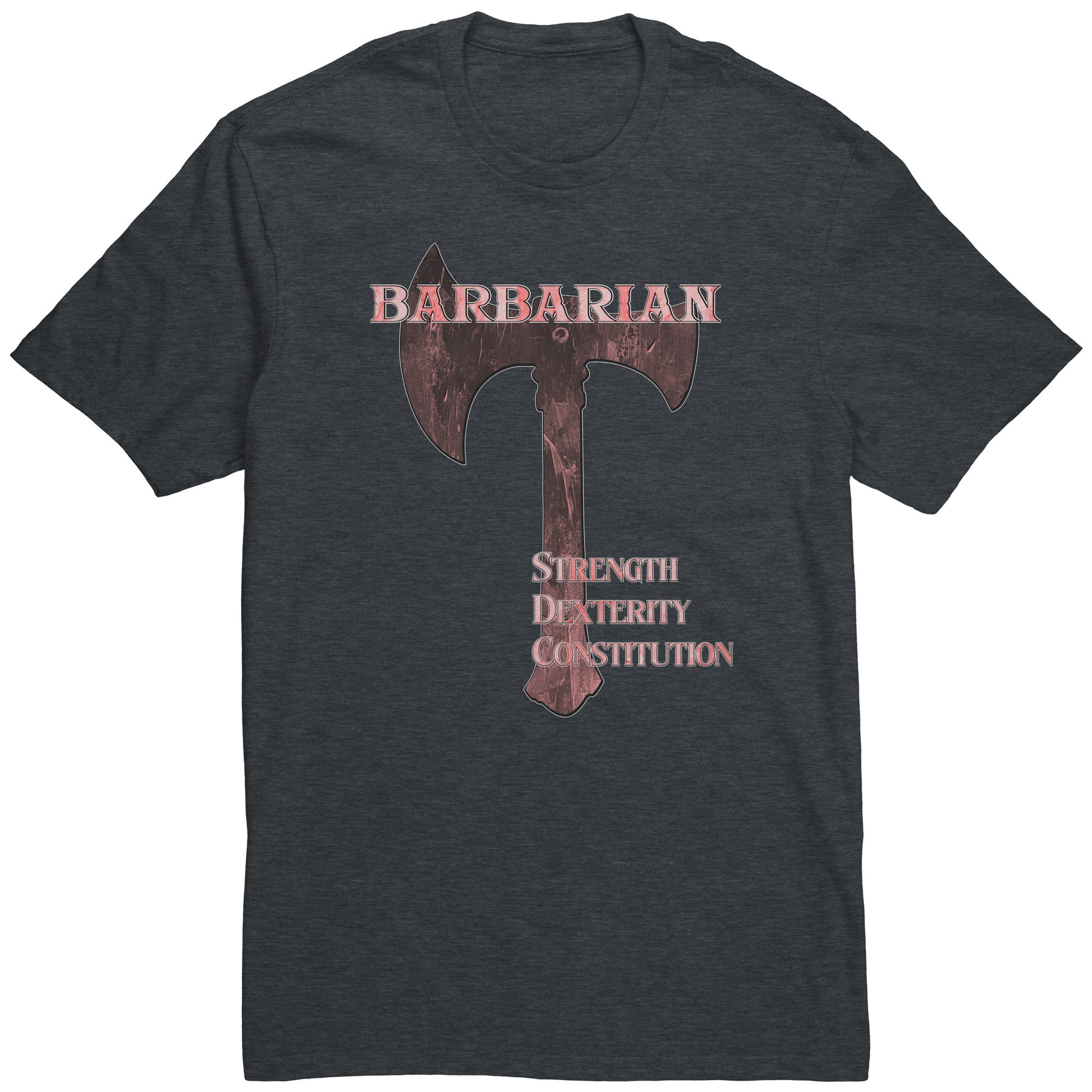 We got your stats right here. These 100% cotton shirts feature the original Barbarian icon by Ravensdaughter. Soft and comfy, these shirts are perfect for game night.