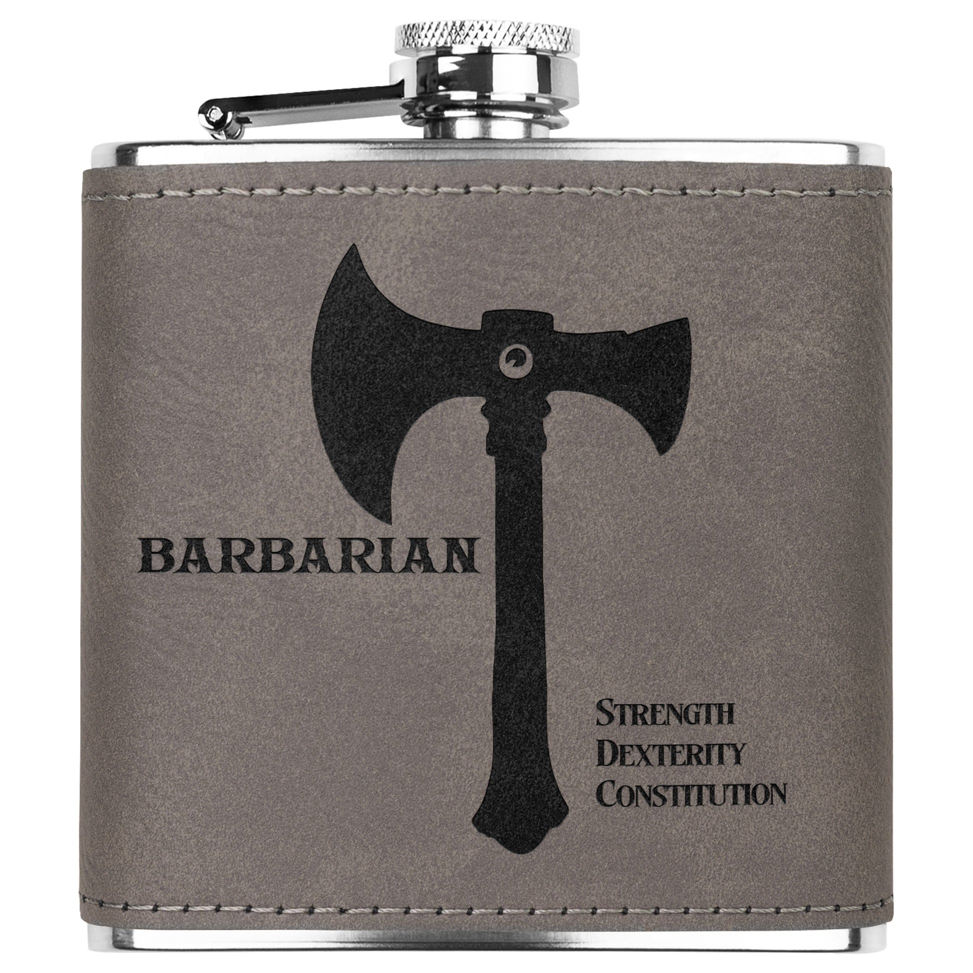 Whatever your favorite libation might be, carry it in style! This 6oz flask fits easily in most pockets. Made from stainless steel and wrapped in laser-engraved leatherette, it's perfect for any adventure.