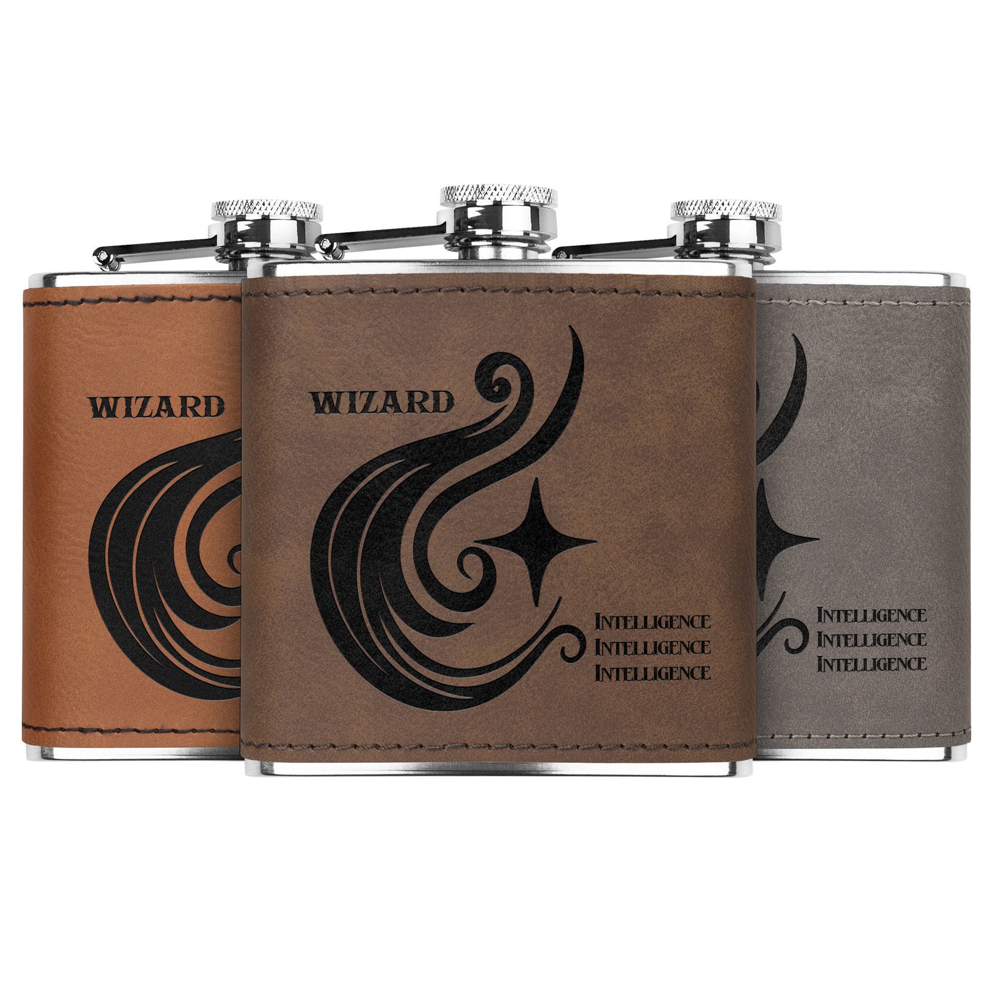 Whatever your favorite libation might be, carry it in style! This 6oz flask fits easily in most pockets. Made from stainless steel and wrapped in laser-engraved leatherette, it's perfect for any adventure.