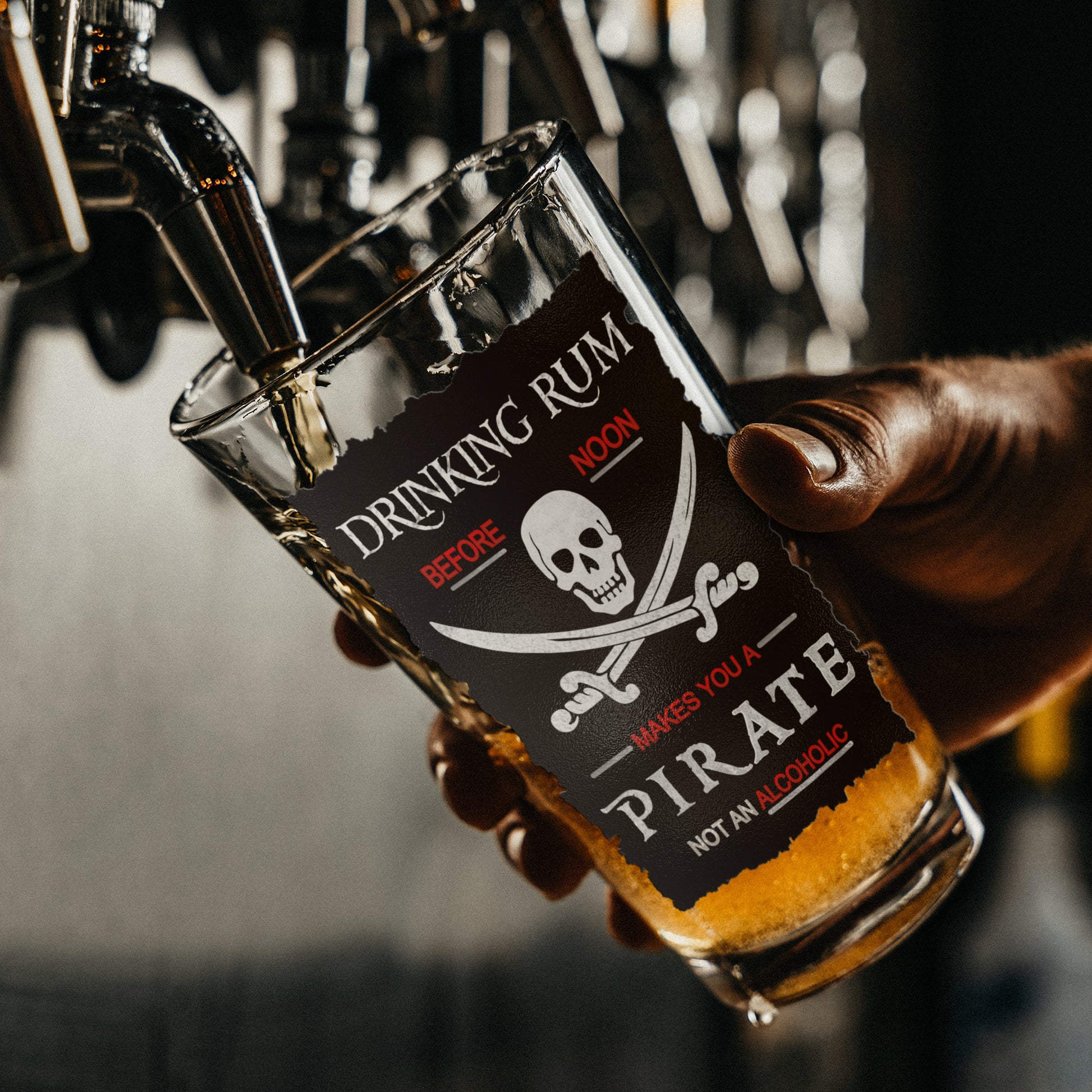 This 16oz glass is perfect for yer favorite brew. Show yer pirate pride as you enjoy yer drink!