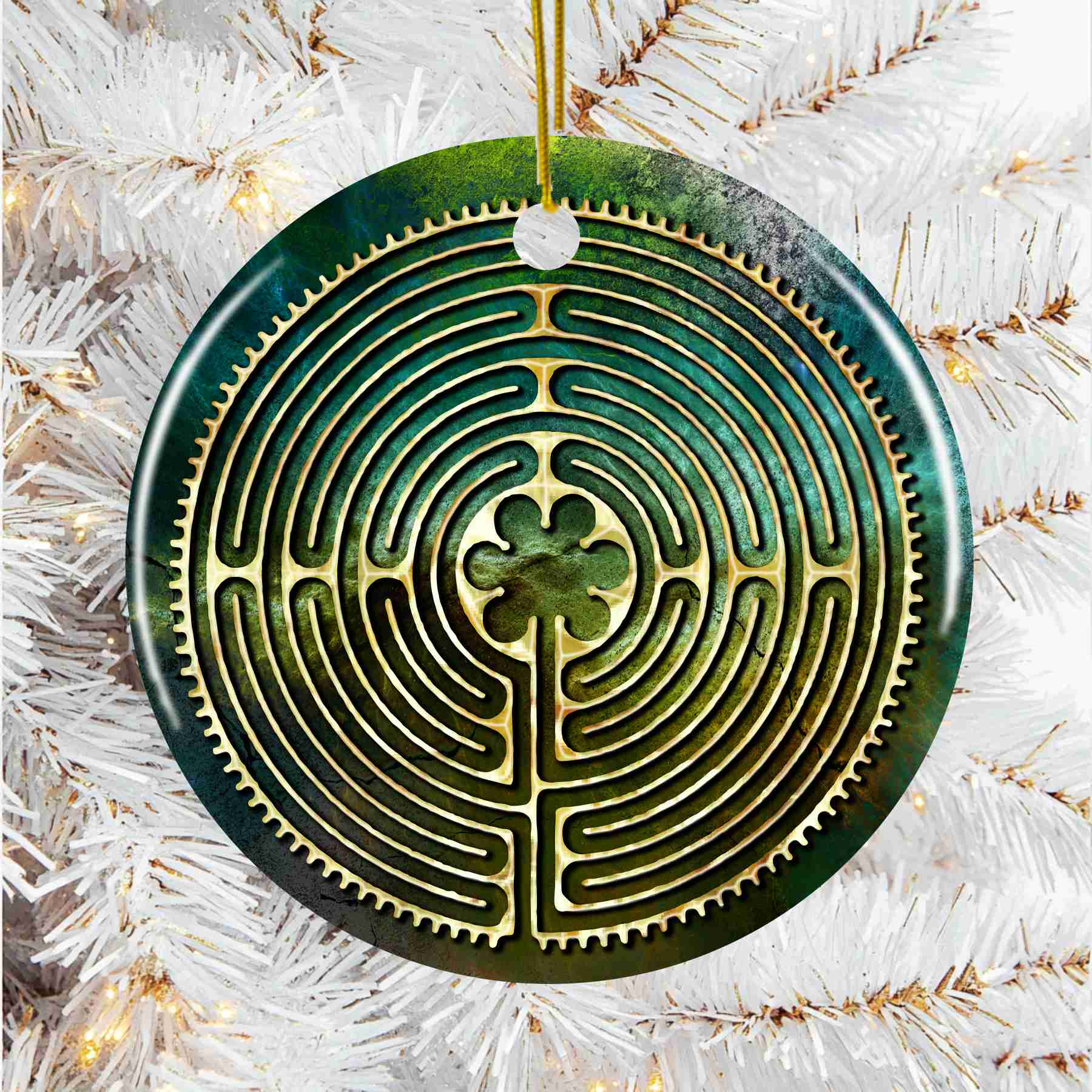 Green Chartres Cathedral Labyrinth Christmas Ornament
