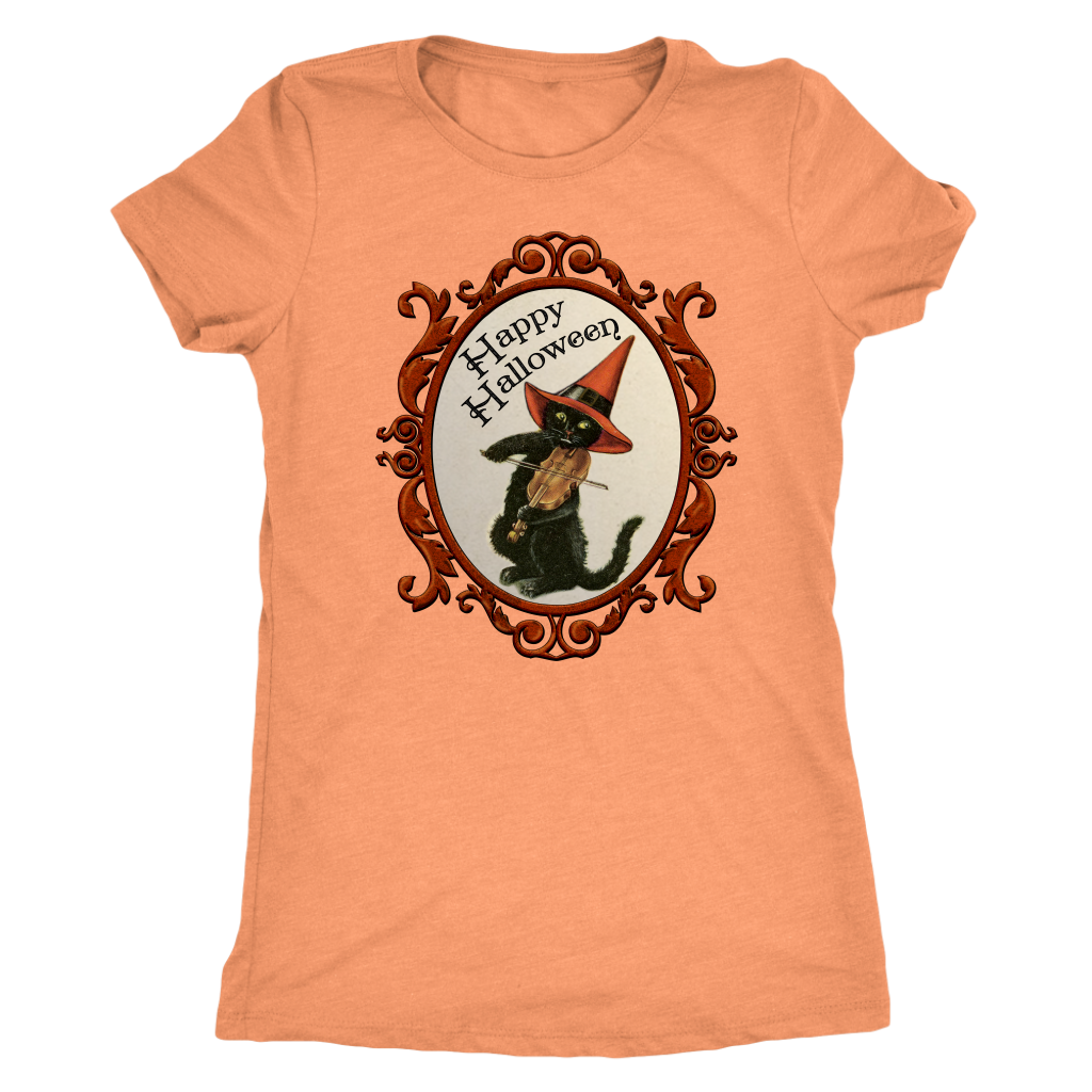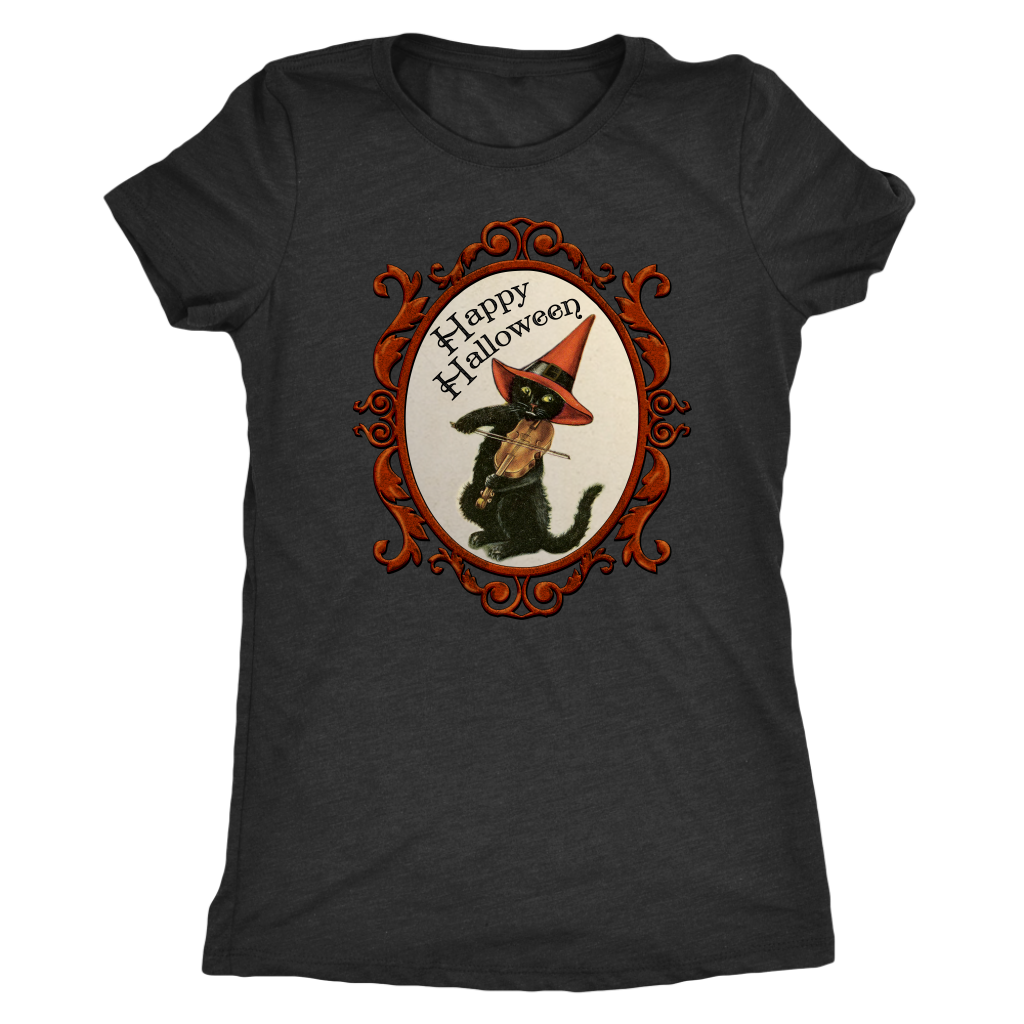 Happy Halloween Vintage Cat and Fiddle Women's Tri-Blend T-Shirt