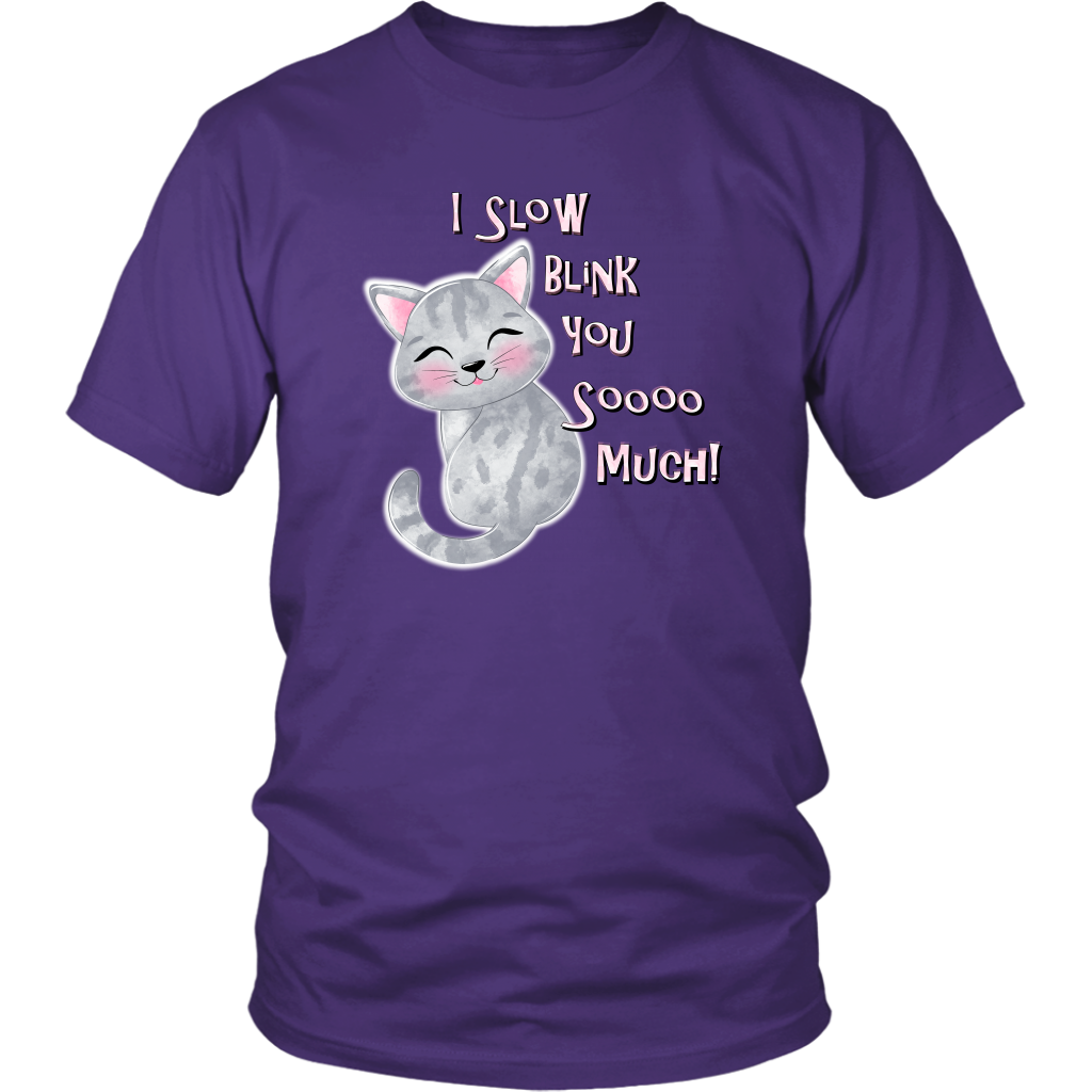 Every Cat Lover Knows what a Slow Blink Means! Show your love in this comfortable 4.3 oz cotton tee. Available in different colors.