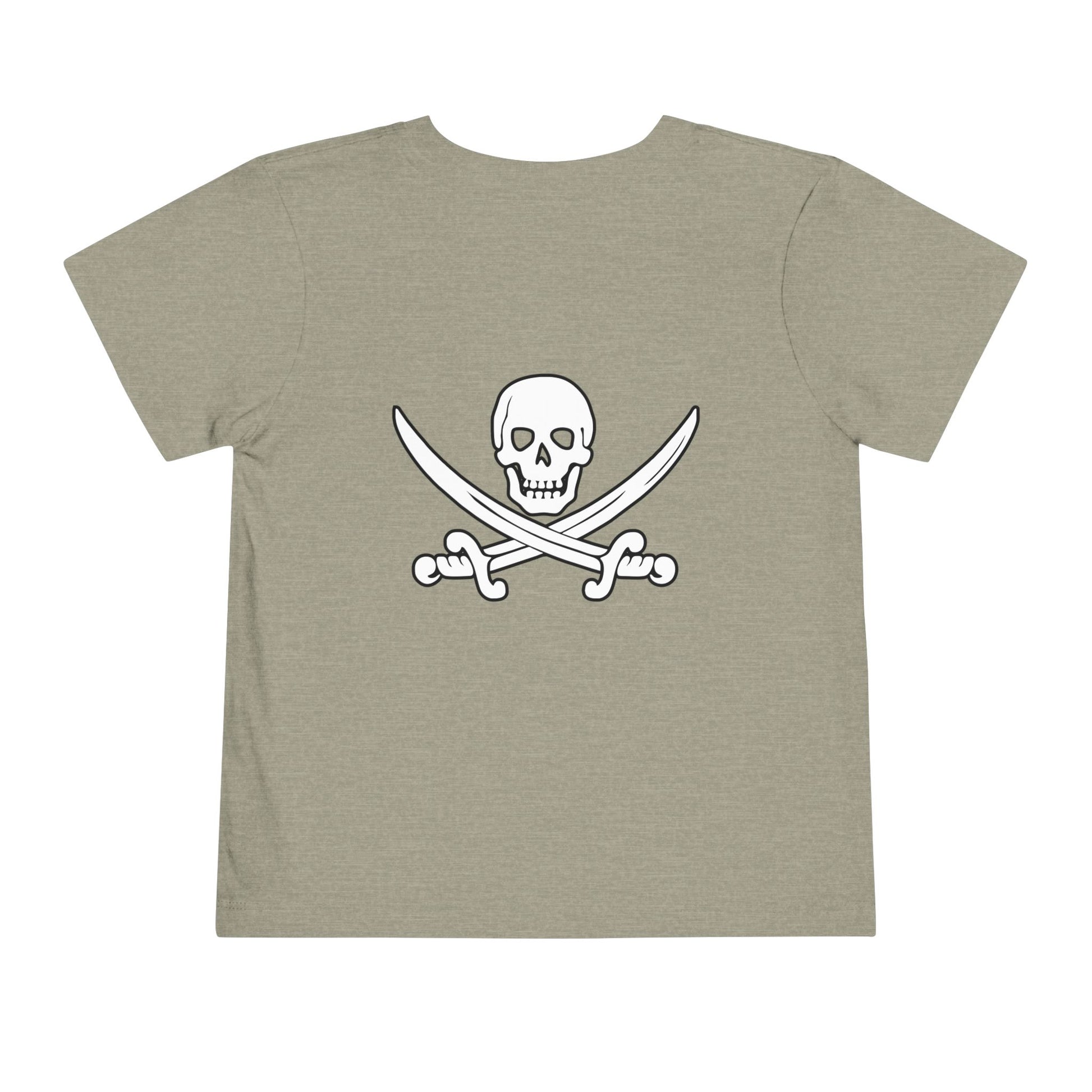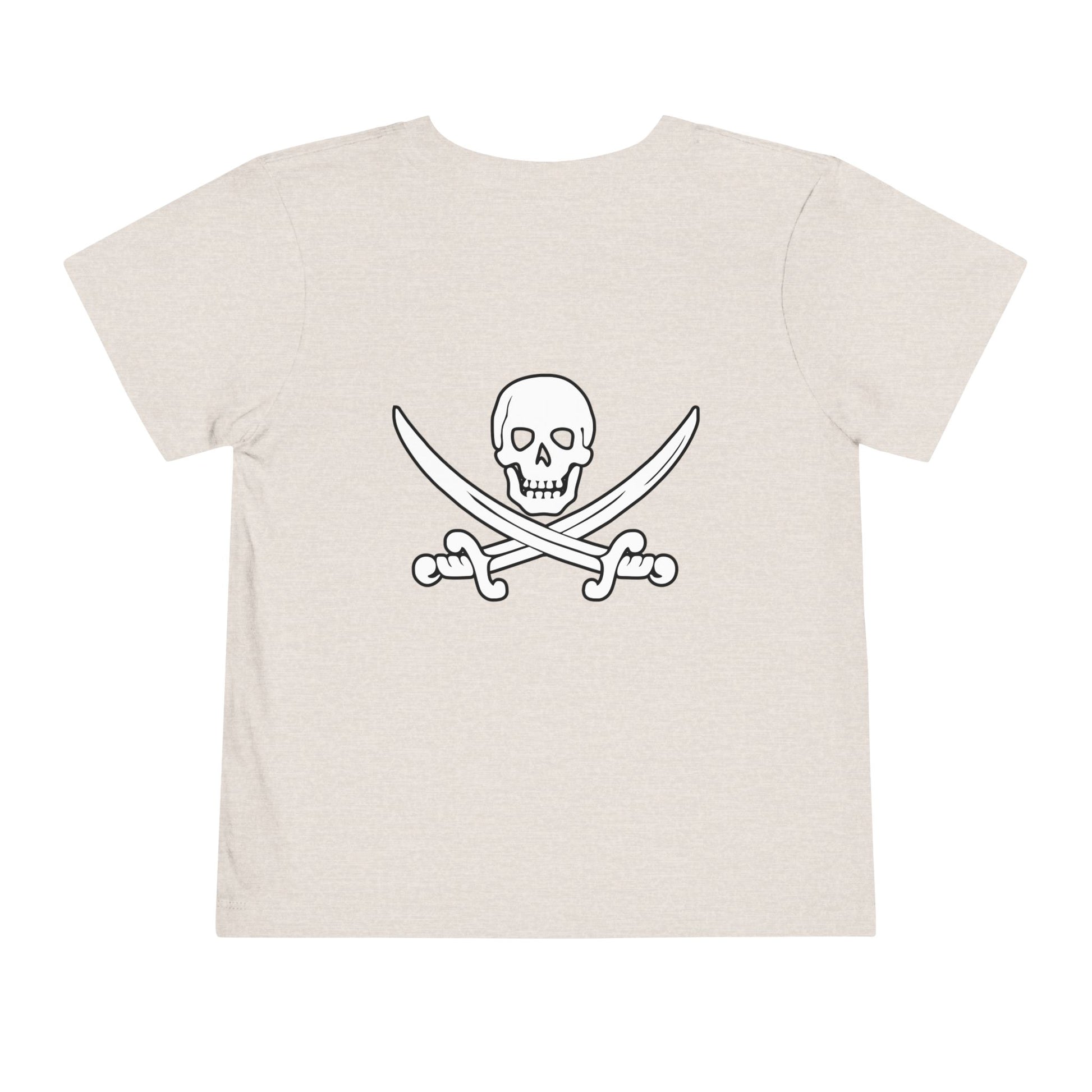 This Toddler Short Sleeve Tee is perfect for your little one’s adventurous spirit! Crafted from soft, breathable materials, this tee offers both comfort and style, making it ideal for everyday wear or special outings. It’s perfect for young swashbucklers on the go. Each toddler tee has a slogan on the front and a Jolly Roger on the back.