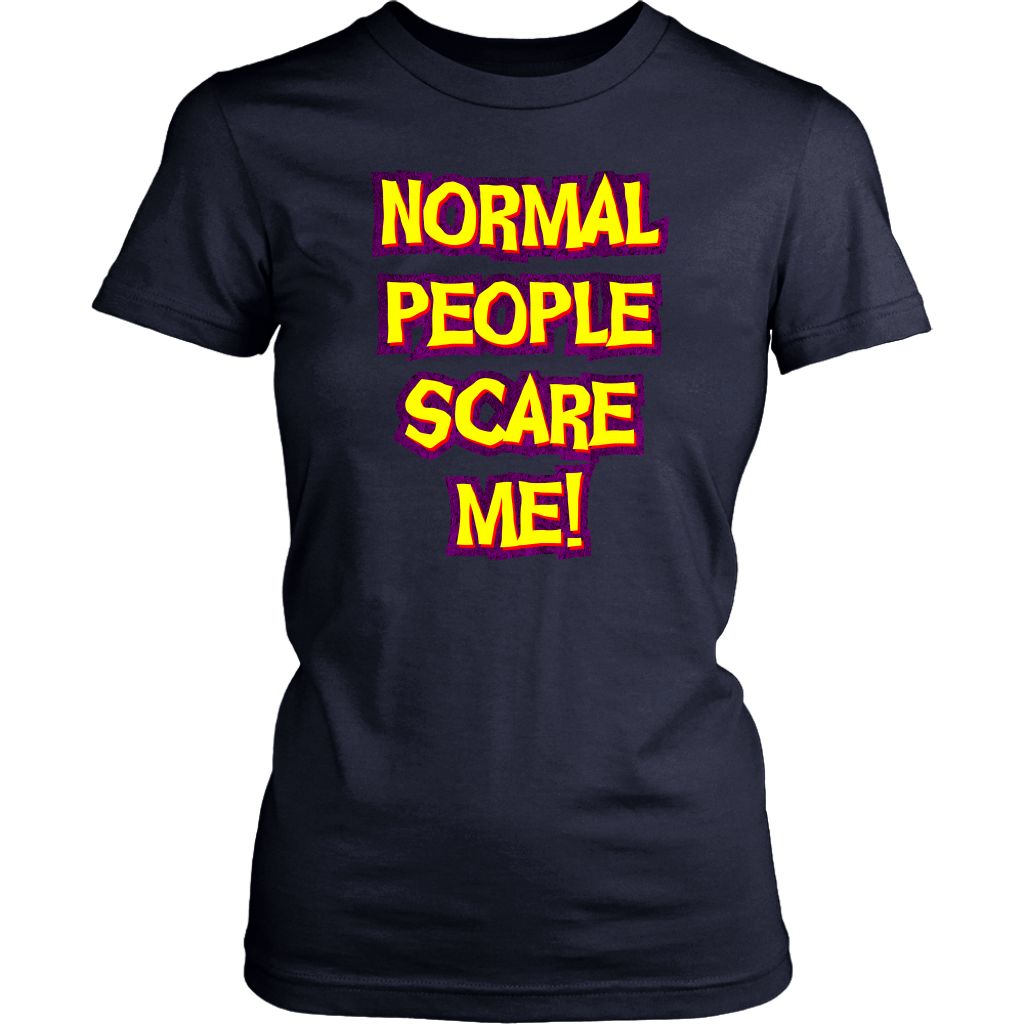 Normal People Scar Me! It's a sentiment we all hold dear. Ward off anyone you fear in this comfortable 4.3 oz cotton tee. Available in 6 different colors.