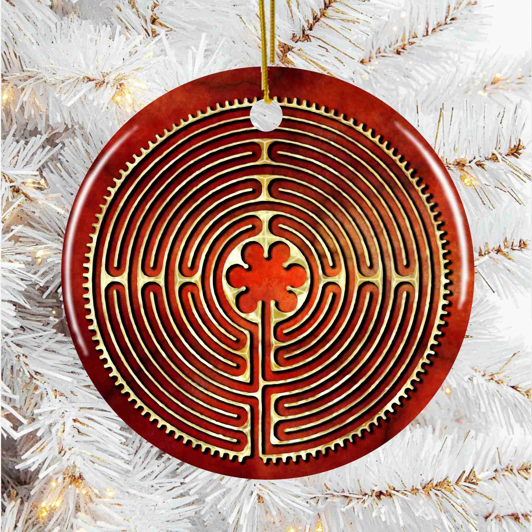 Whether you make it into a holiday tree decoration, a thoughtful gift, or a stylish accent in your home, the Chartres Cathedral Labyrinth brings serenity to any setting. White ceramic printed on one side.