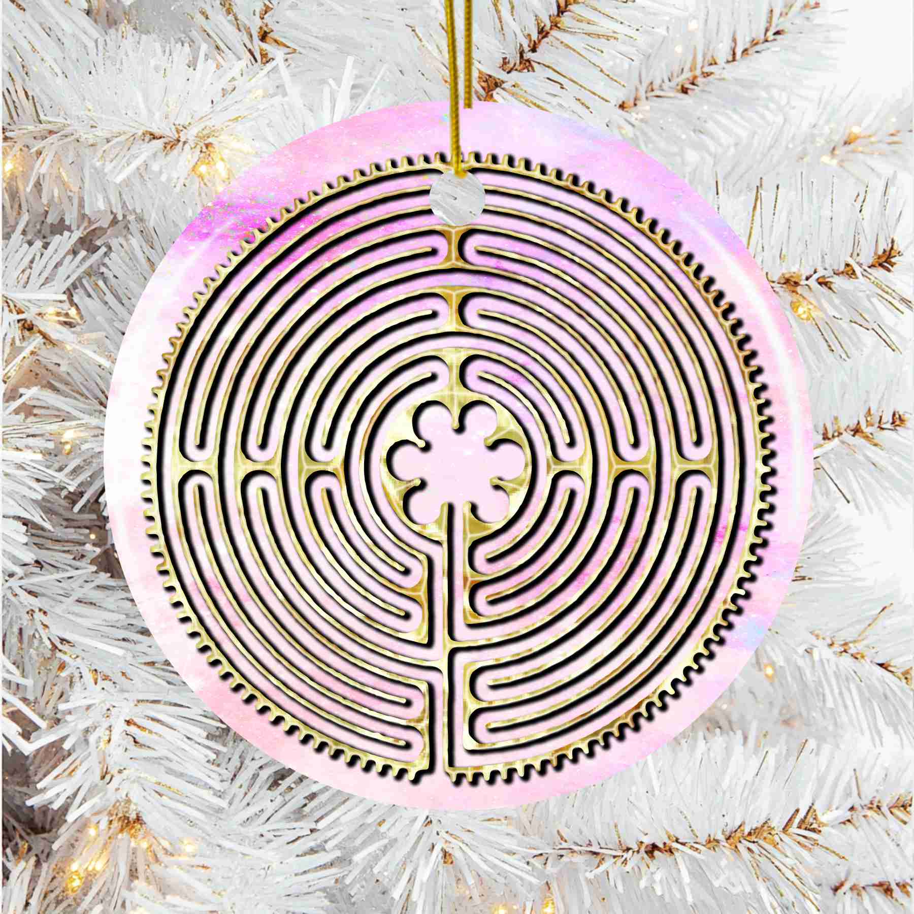 Pink Chartres Cathedral Labyrinth Christmas Ornament