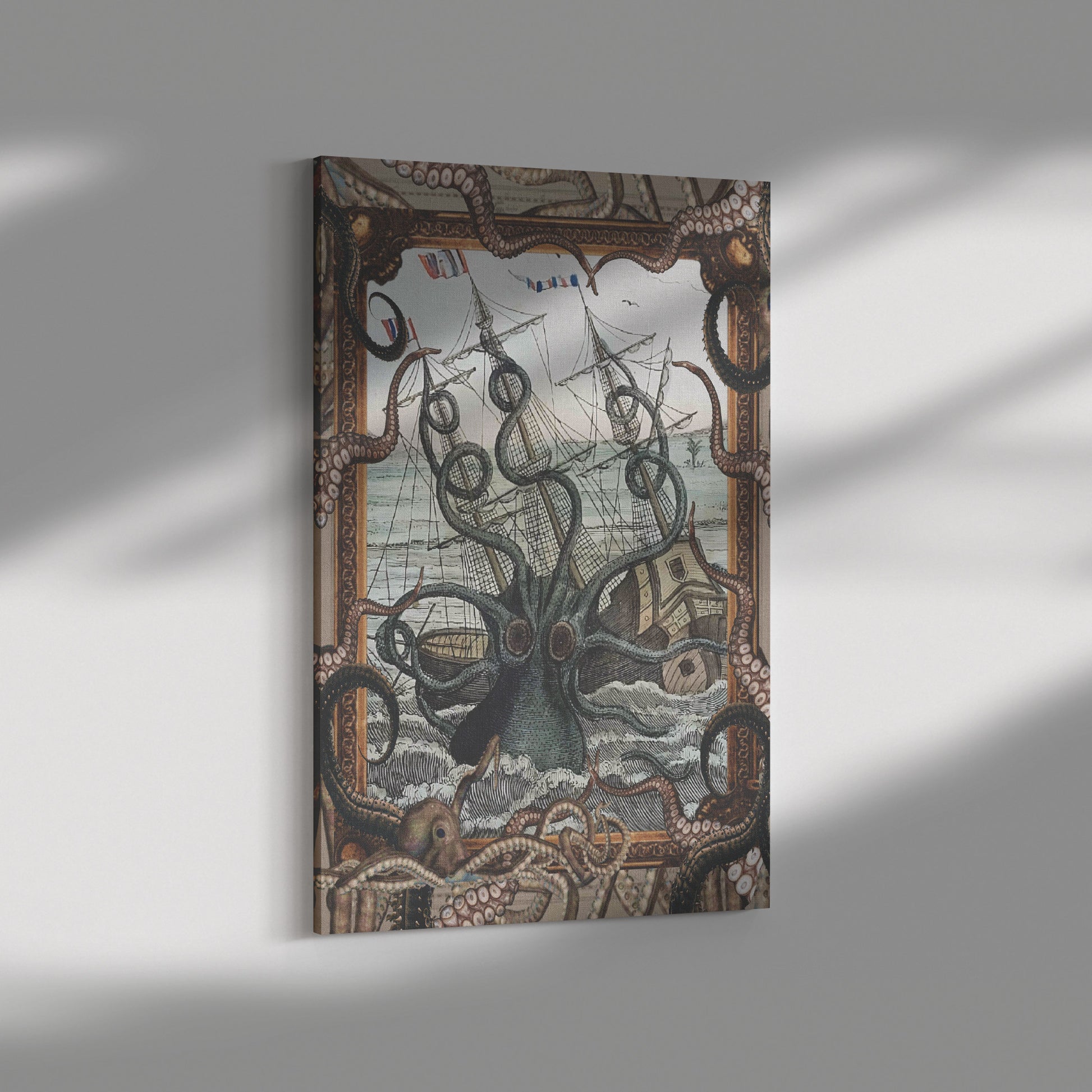 Release The Kraken! This nautical pirate collage from Ravensdaughter Designs features "The Colossal Octopus" painted in 1810 by Pierre Denys de Montfort.
