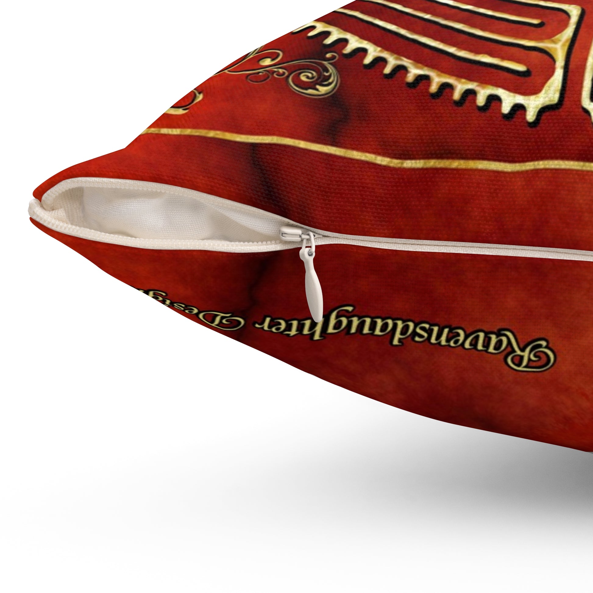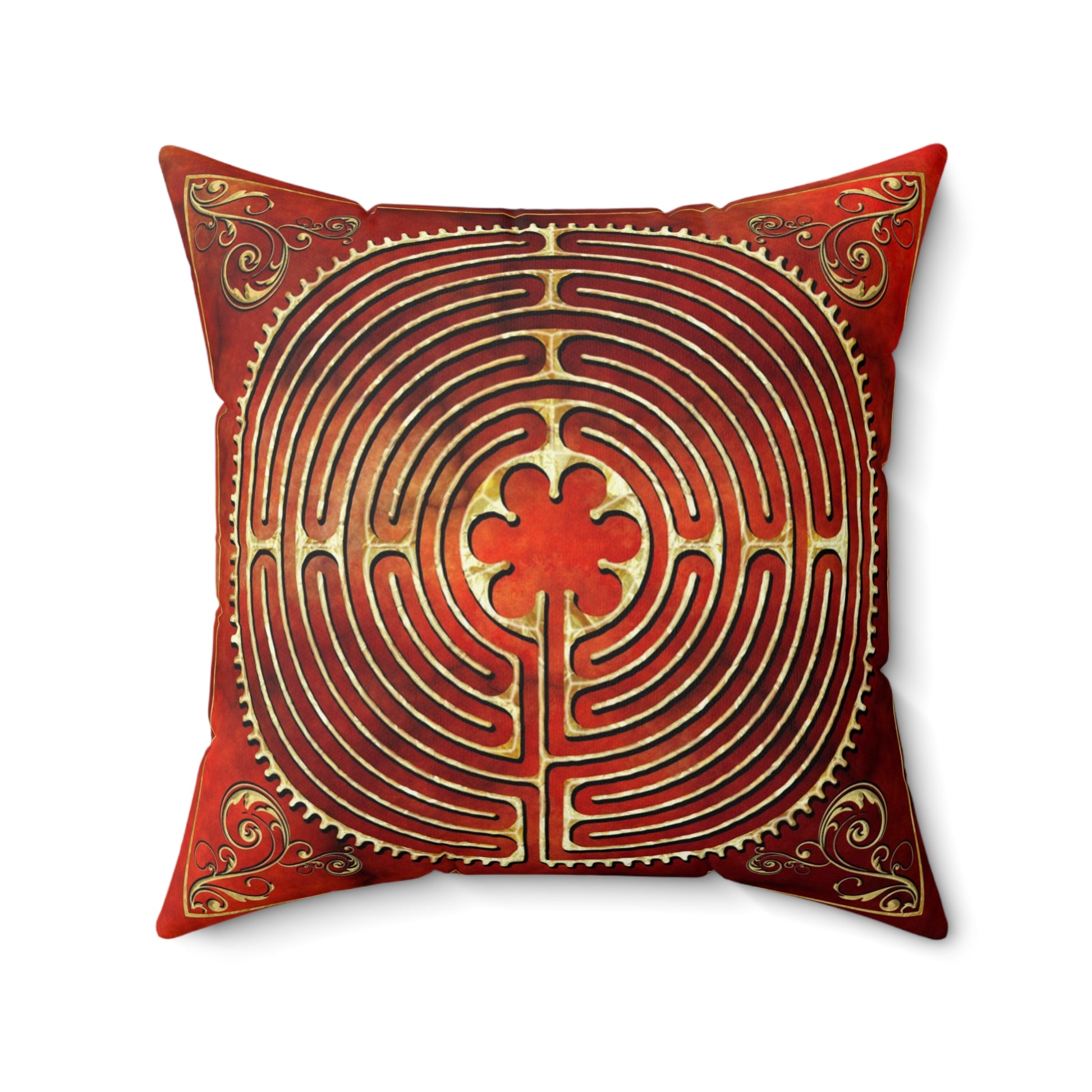 This colorful throw pillow features the Chartres Cathedral Labyrinth digital collage by Ravensdaughter Designs. The image has a 3-D appearance even though it is printed directly on the fabric. The decorative scroll accents give the design a classic look.