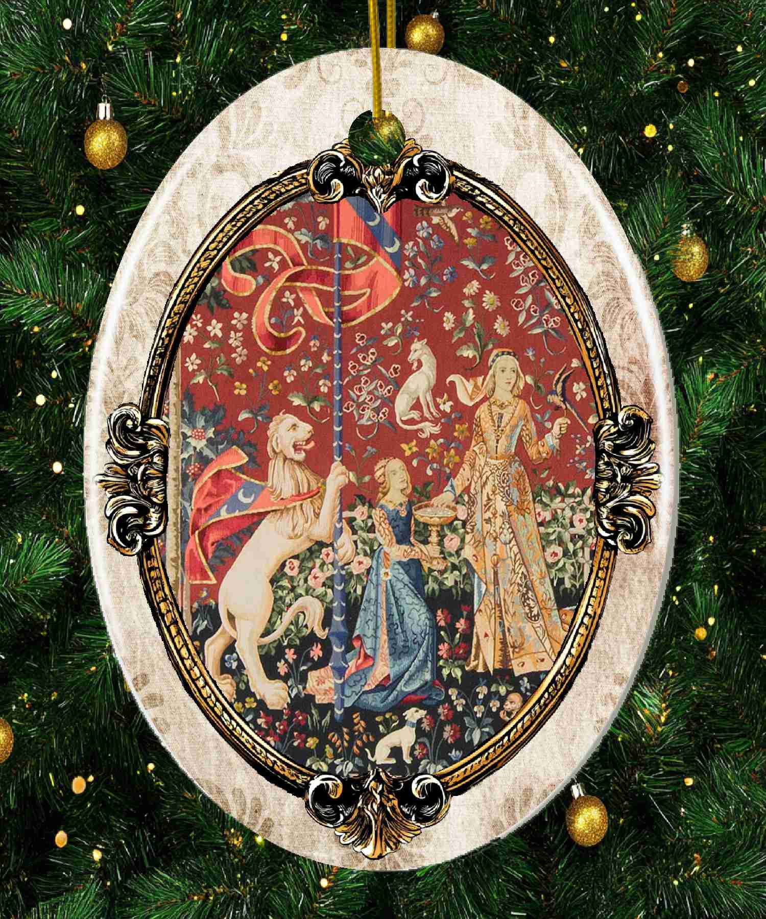 Unicorn Tapestry Ceramic Ornament - Ladies and the Lion